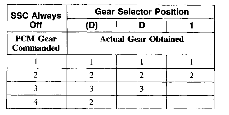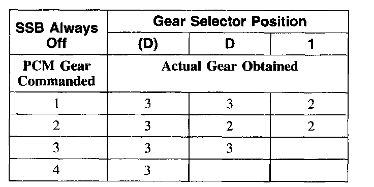 Shift Solenoid Failure Mode Chart "Always Off"