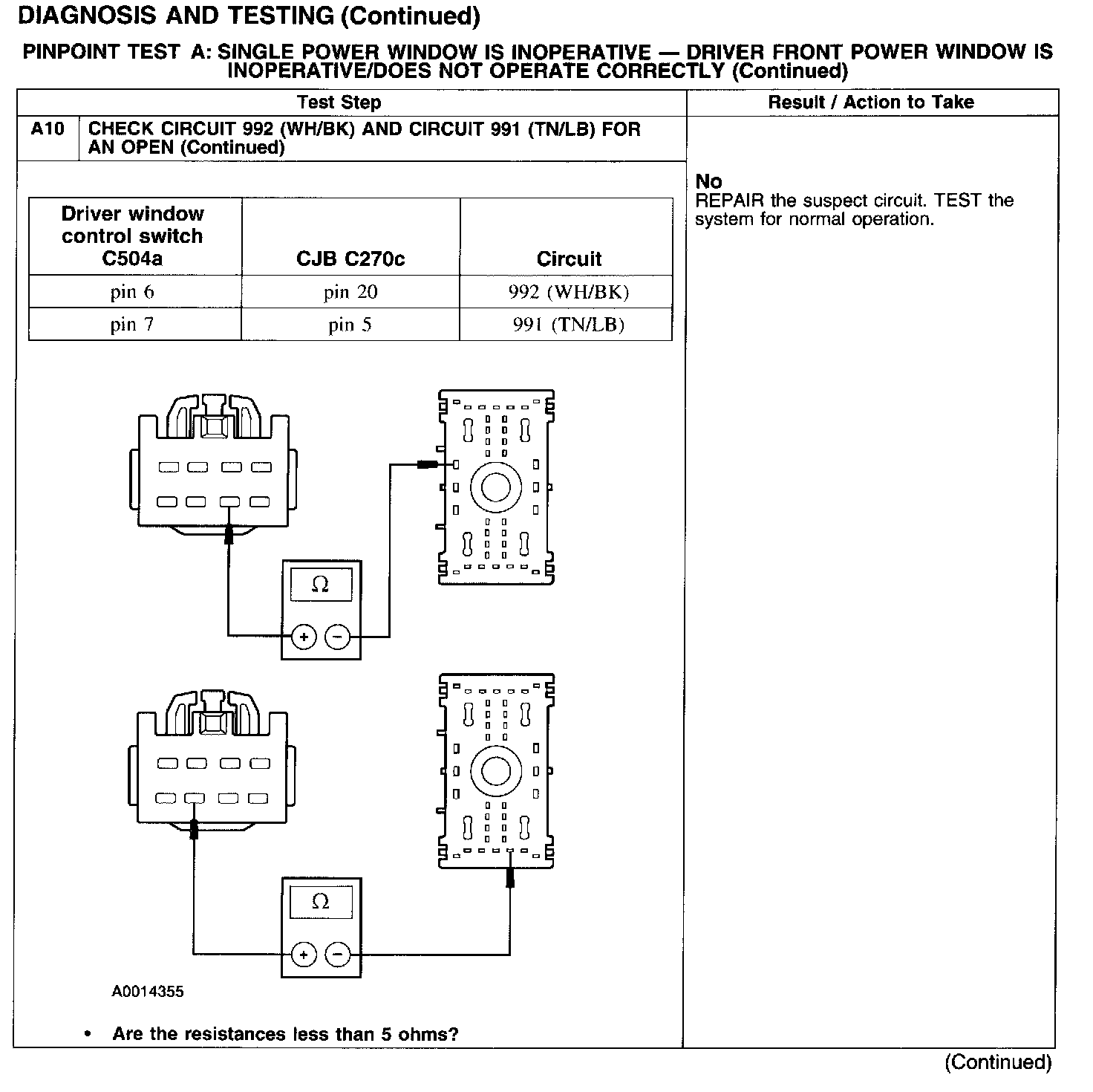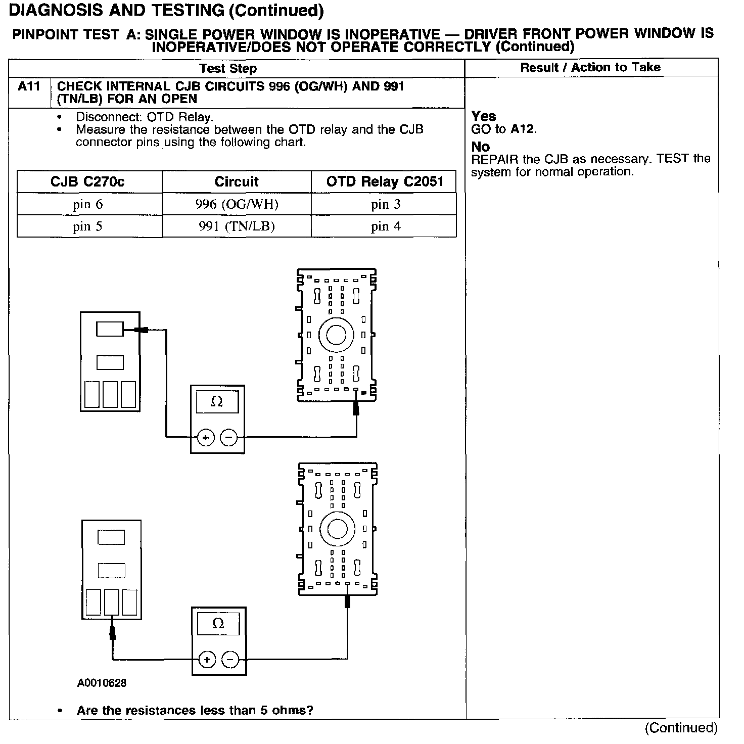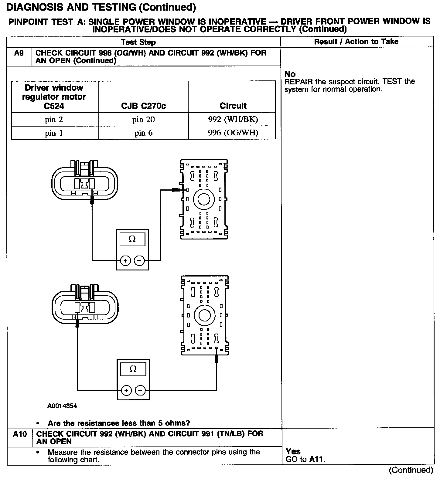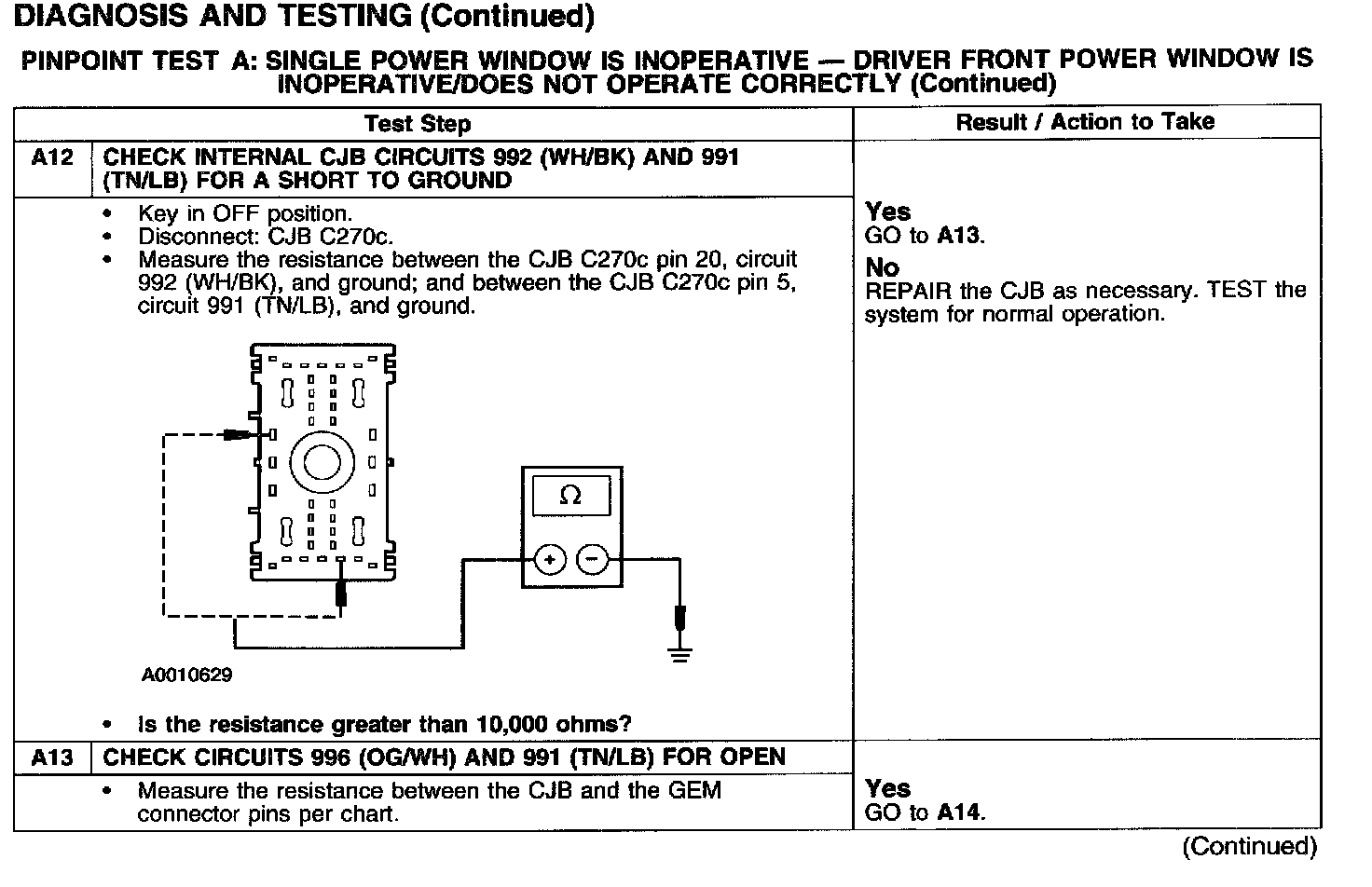 PINPOINT TEST A: SINGLE POWER WINDOW IS INOPERATIVE - DRIVER FRONT POWER WINDOW IS INOPERATIVE/DOES NOT OPERATE CORRECTLY