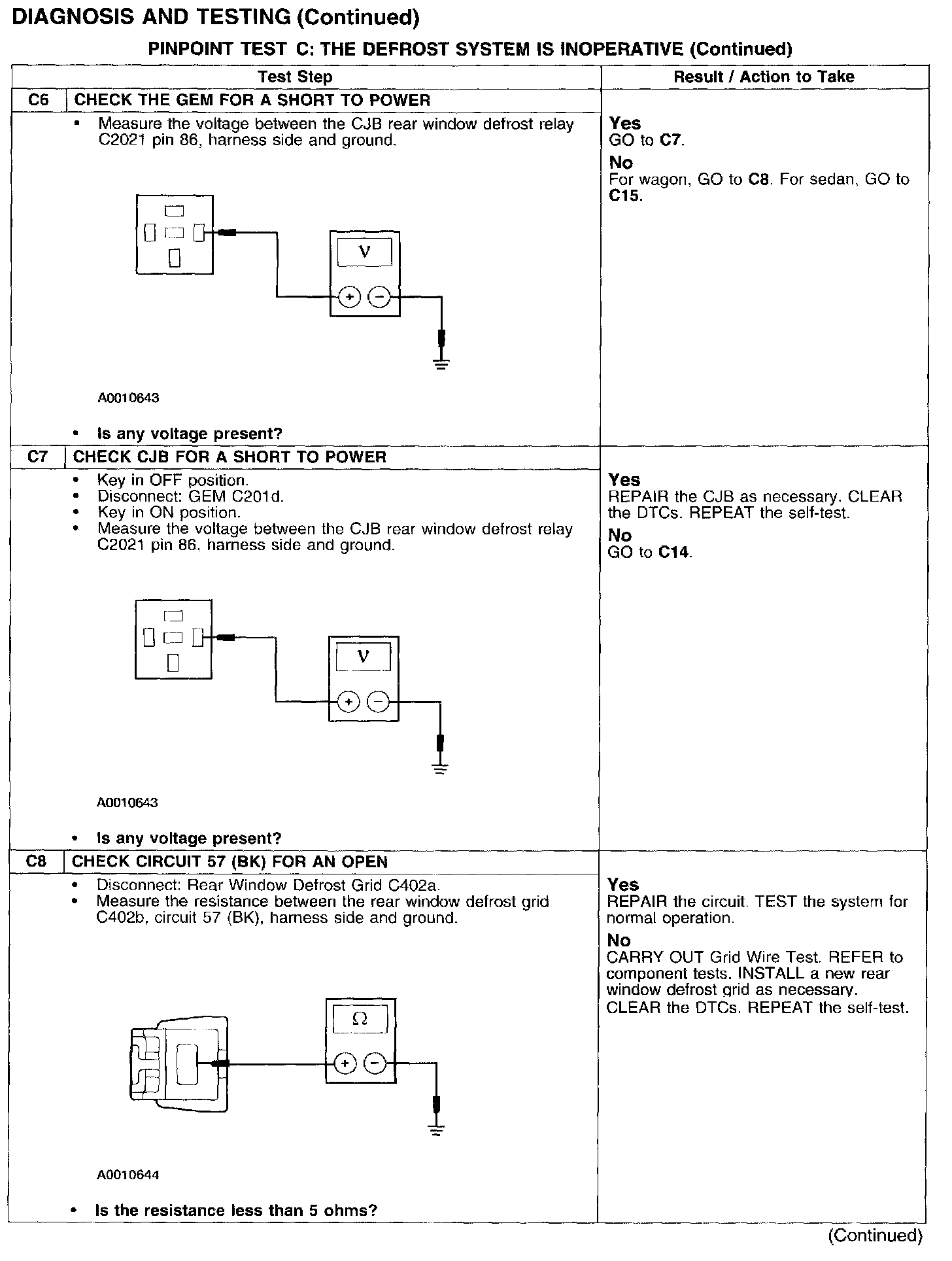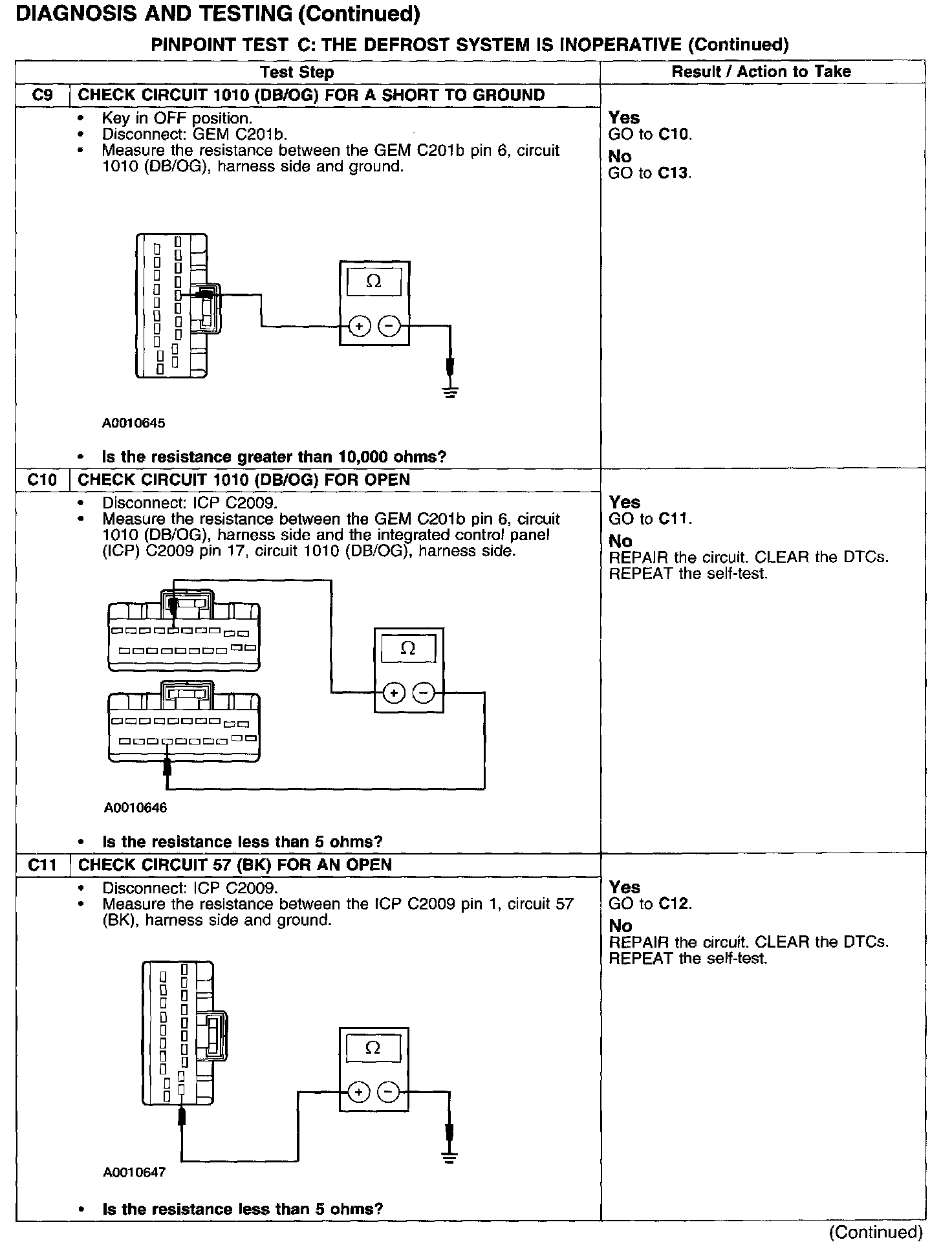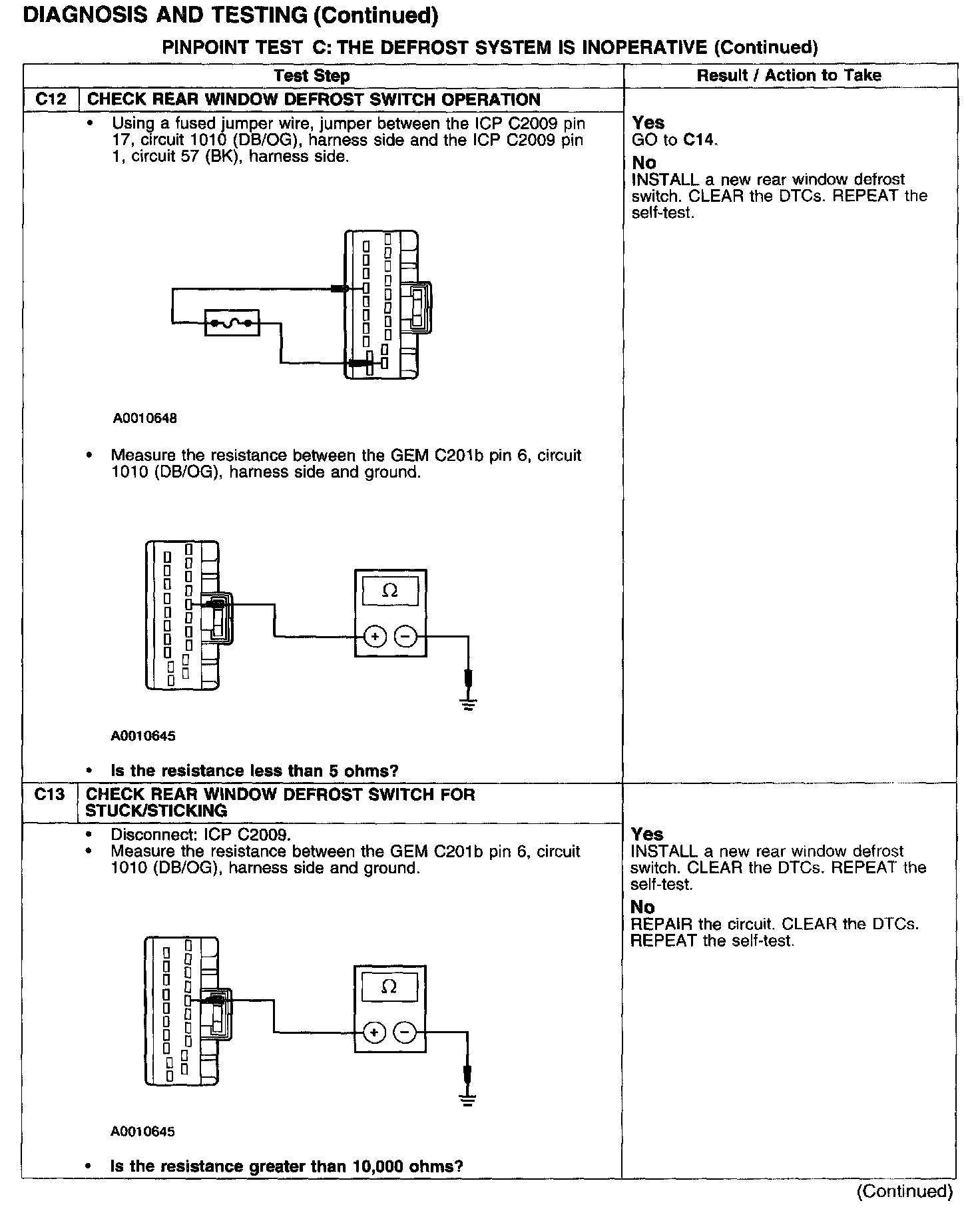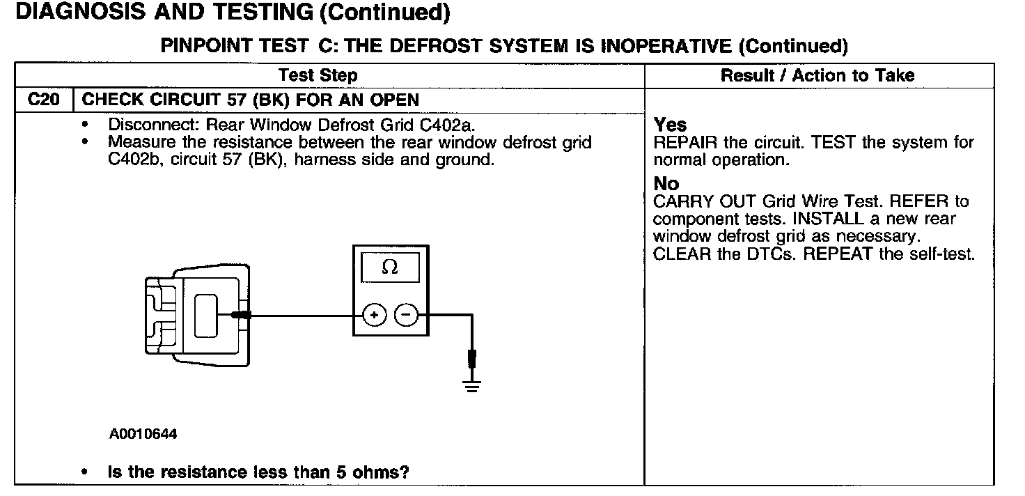 PINPOINT TEST C: THE DEFROST SYSTEM IS INOPERATIVE