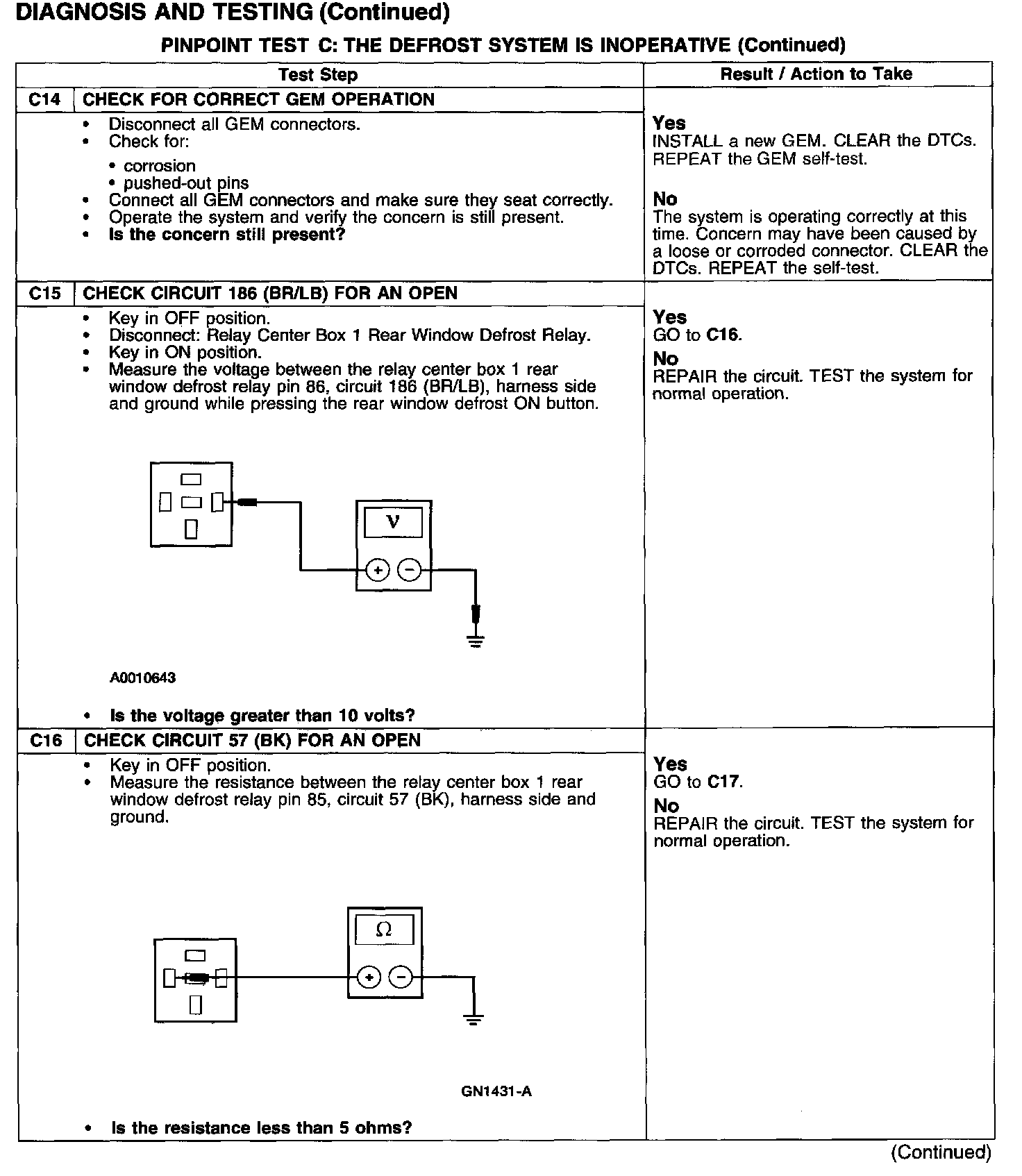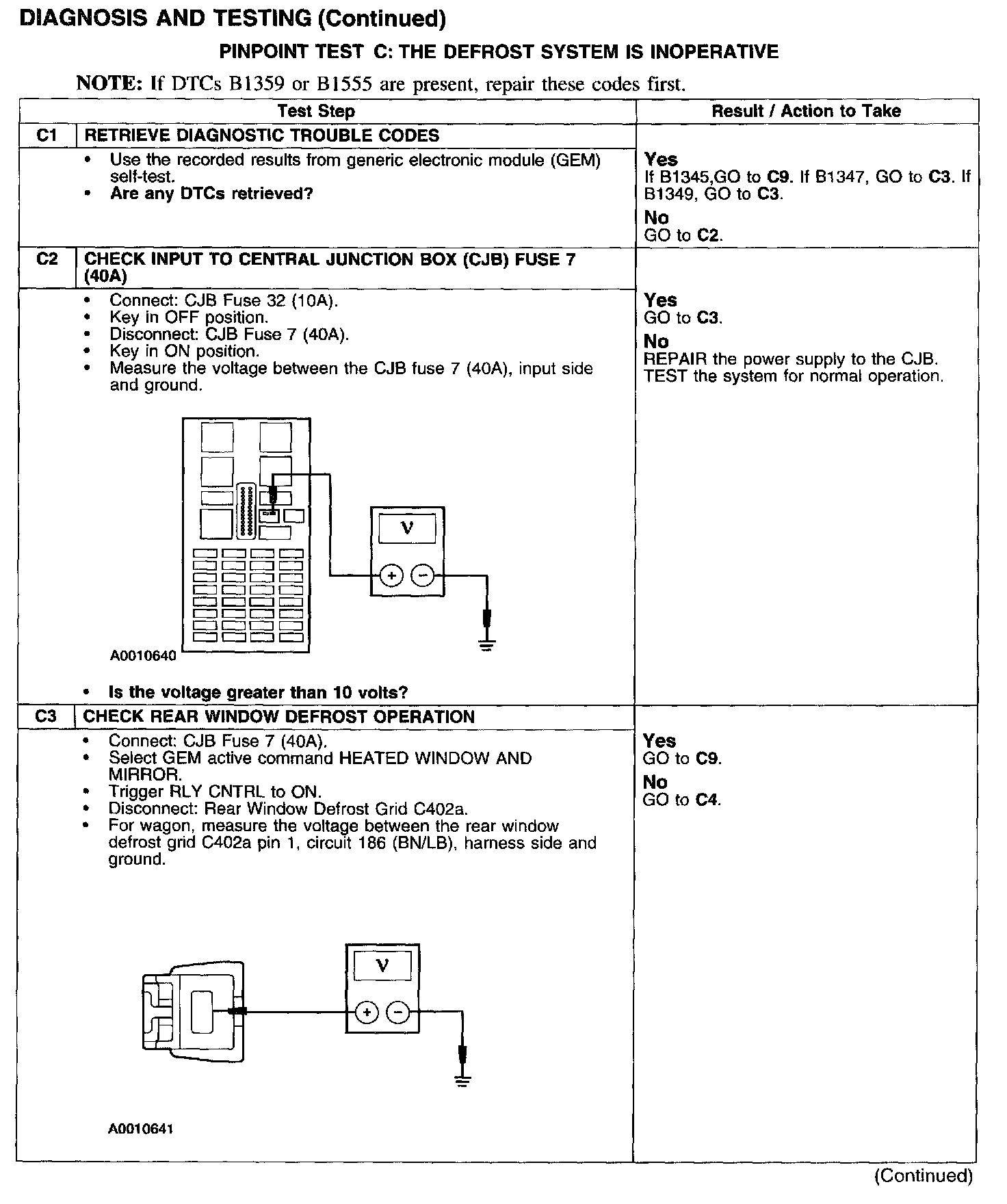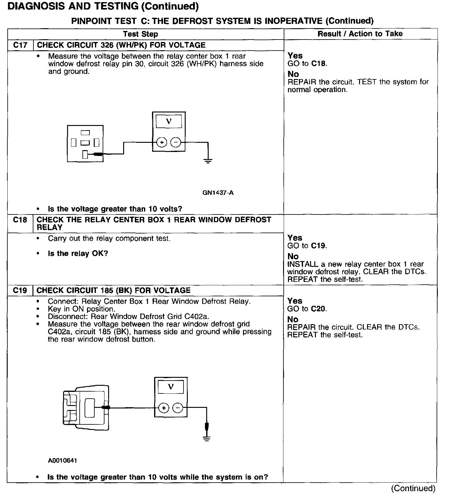 PINPOINT TEST C: THE DEFROST SYSTEM IS INOPERATIVE