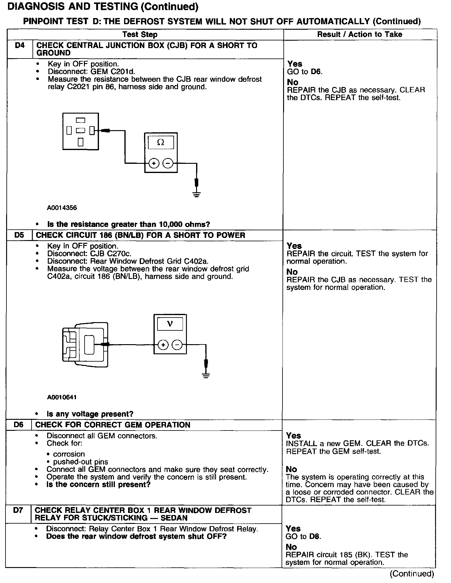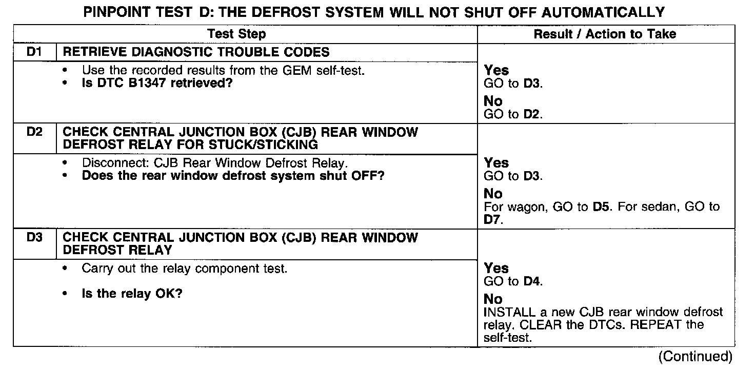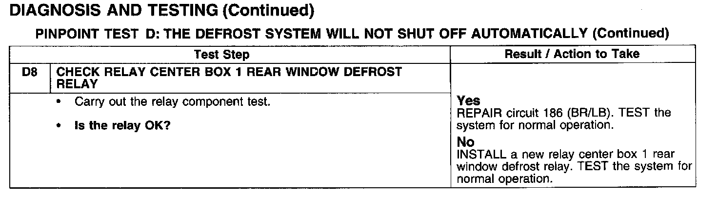 PINPOINT TEST D: THE DEFROST SYSTEM WILL NOT SHUT OFF AUTOMATICALLY