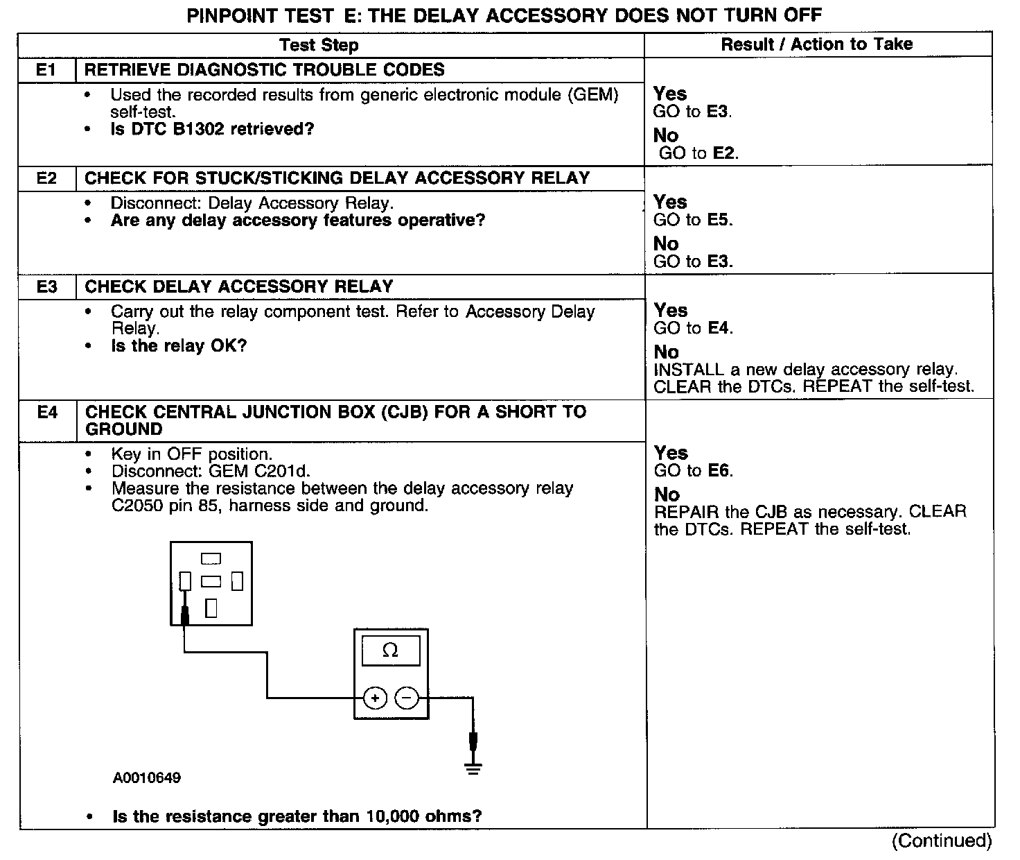 PINPOINT TEST E: THE DELAY ACCESSORY DOES NOT TURN OFF