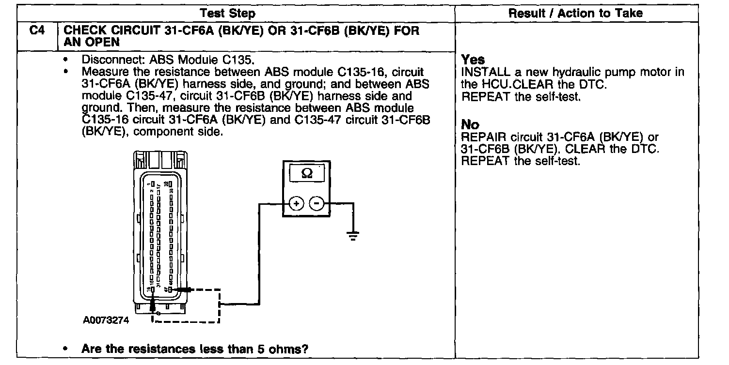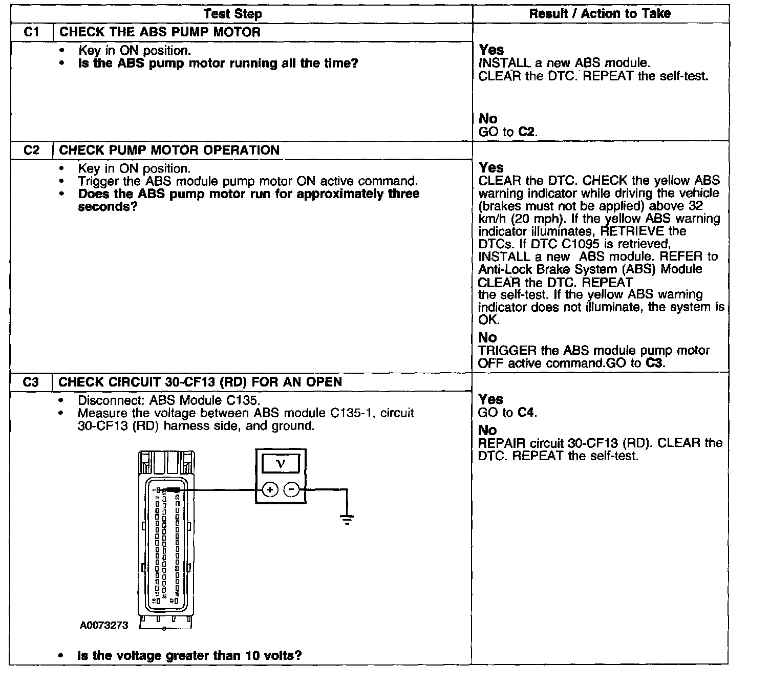 PINPOINT TEST C: DTC C1095-ABS HYDRAULIC PUMP MOTOR CIRCUIT FAILURETest C1-C3: