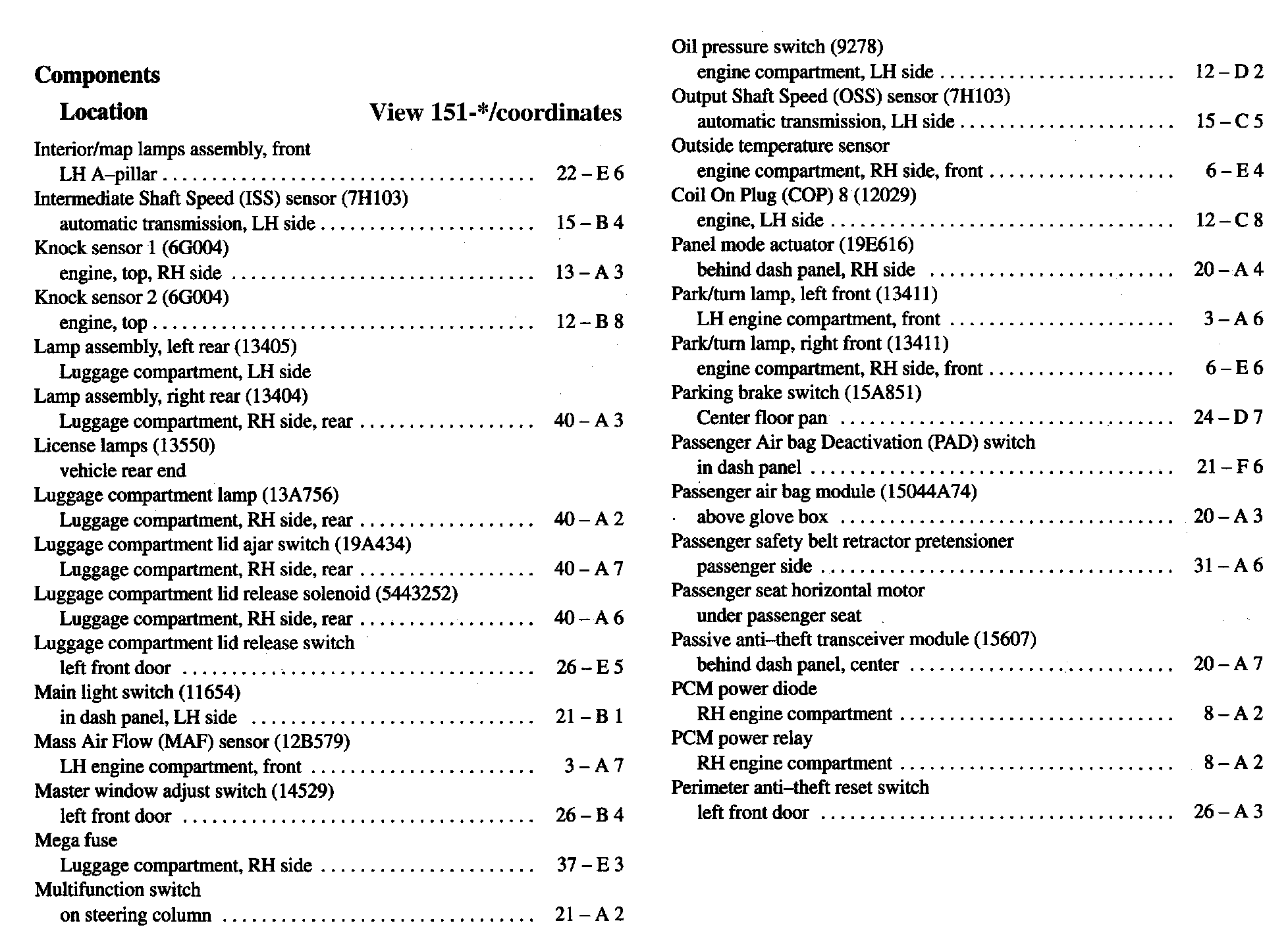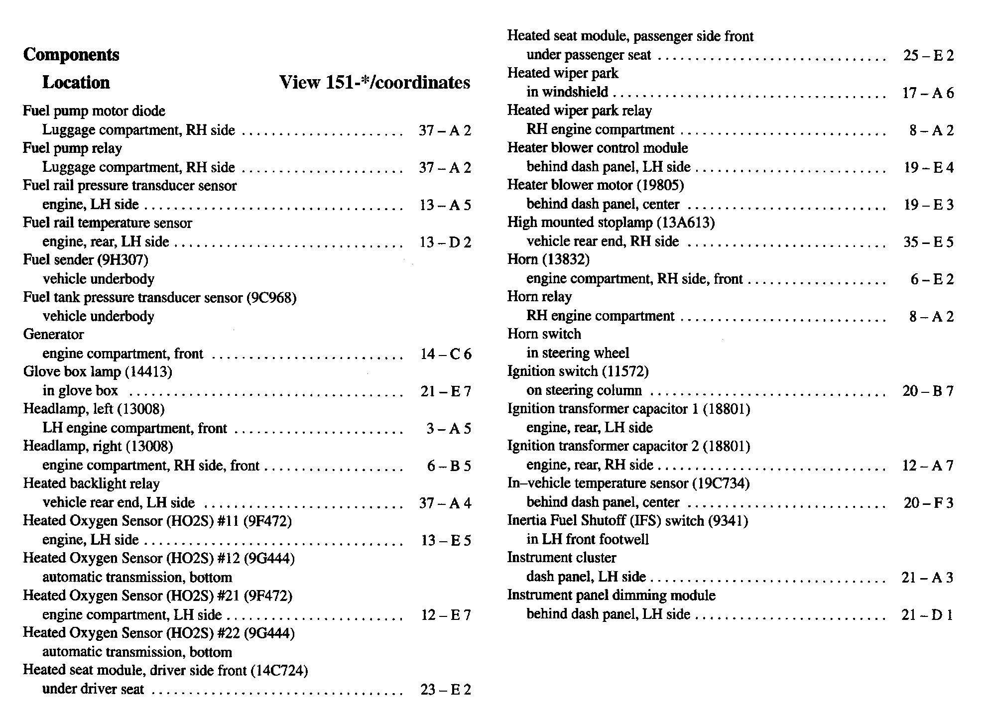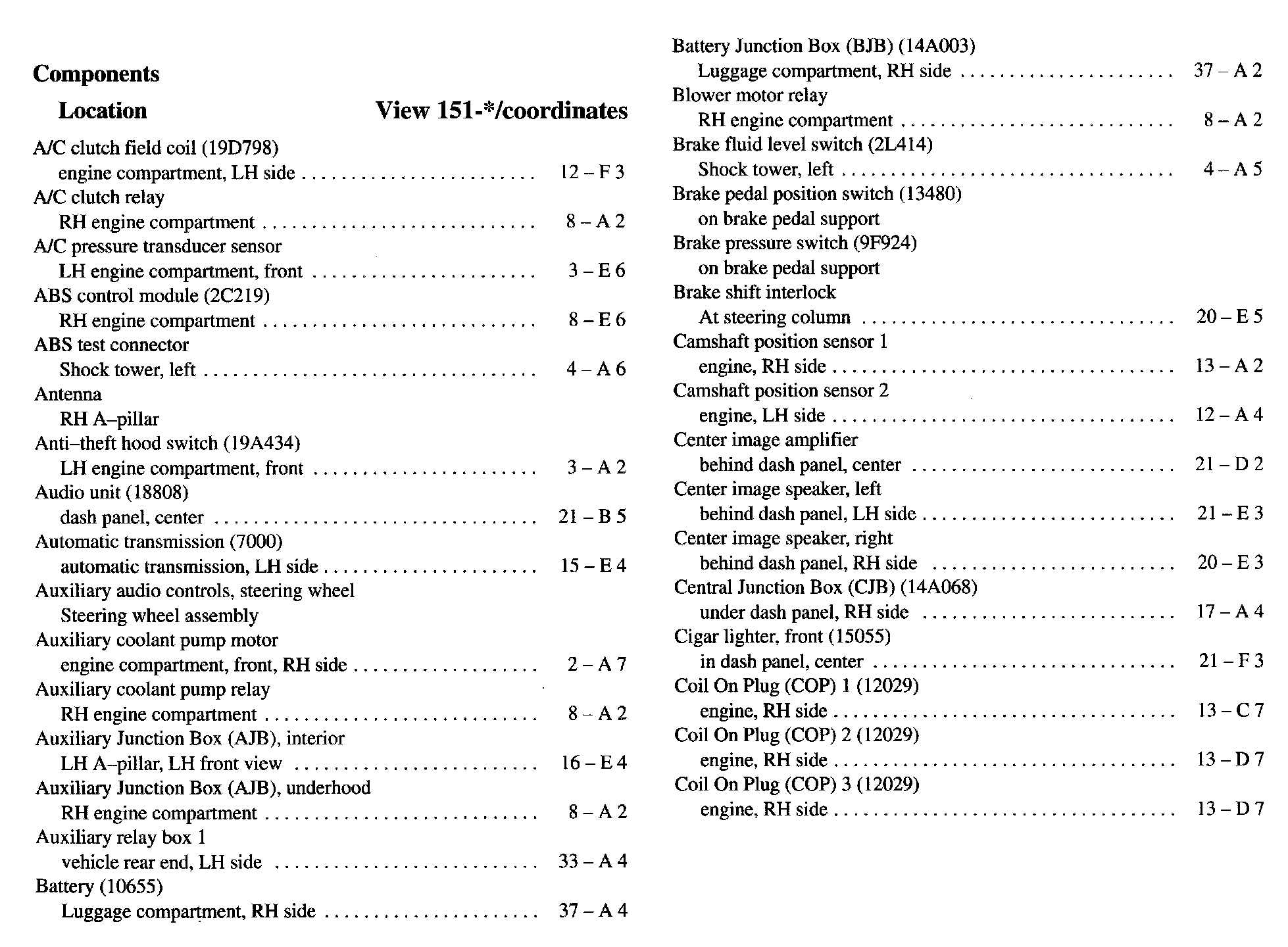 PLEASE NOTE: If a link on the Component Location Index to a View is not provided, that means that the Component and/or View in question does NOT apply to the vehicle model selected.