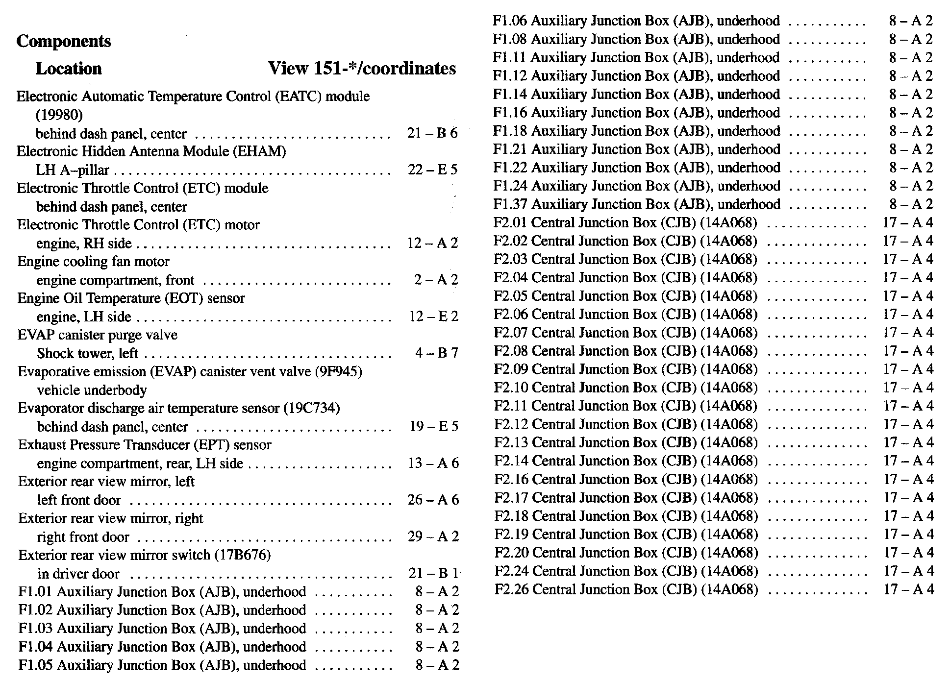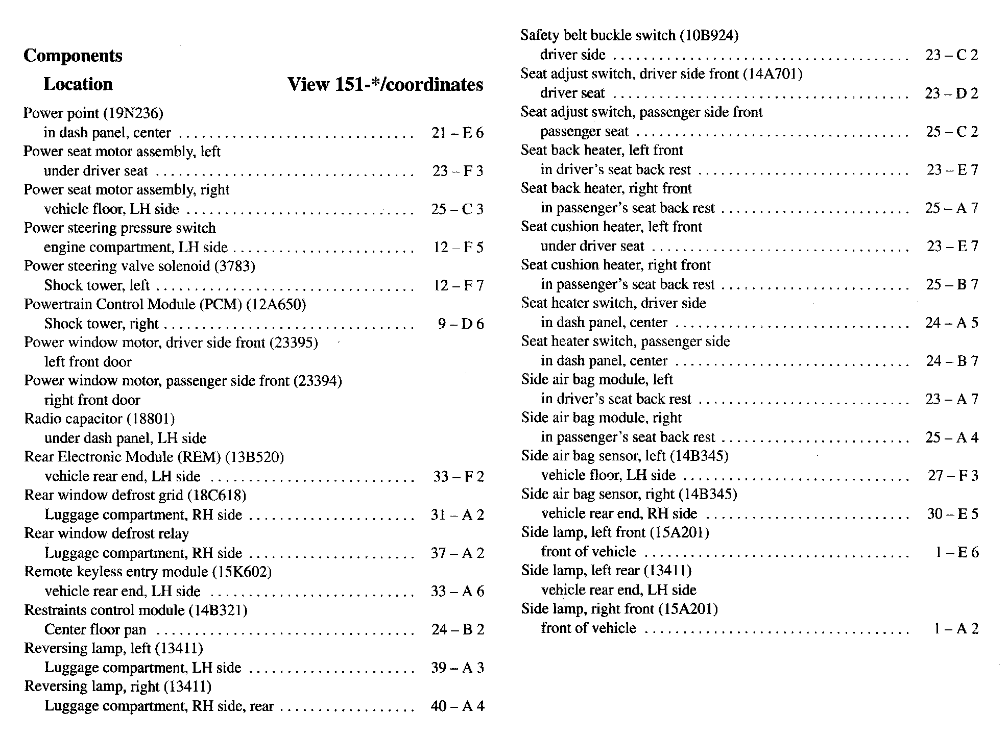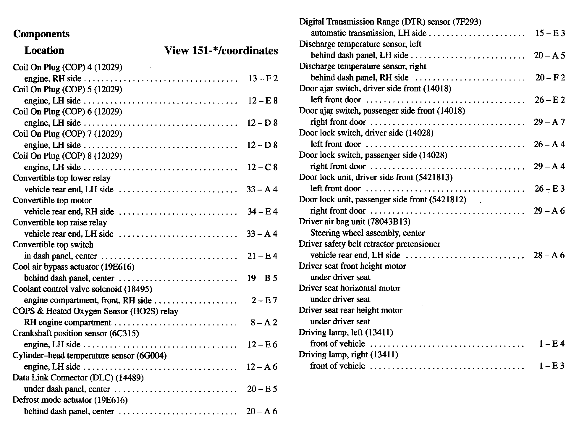 PLEASE NOTE: If a link on the Component Location Index to a View is not provided, that means that the Component and/or View in question does NOT apply to the vehicle model selected.