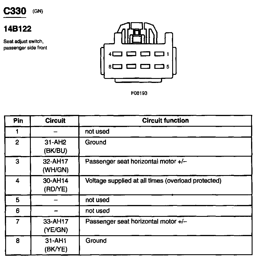 Seat Adjust Switch, Passenger Side Front