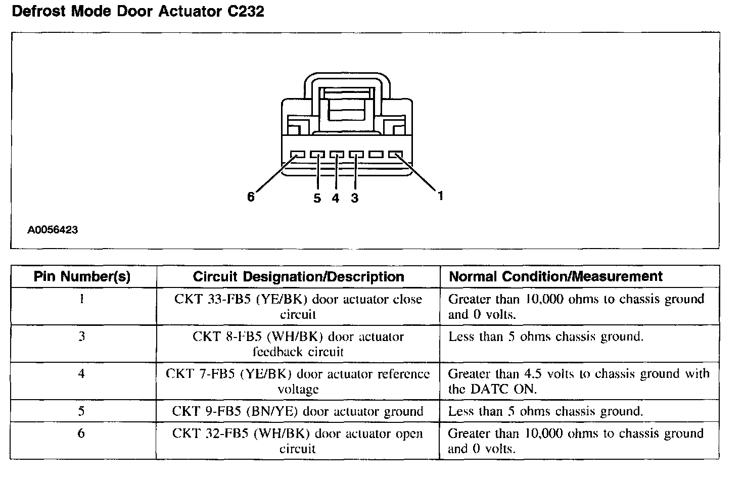 Defrost Mode Door Actuator C232: