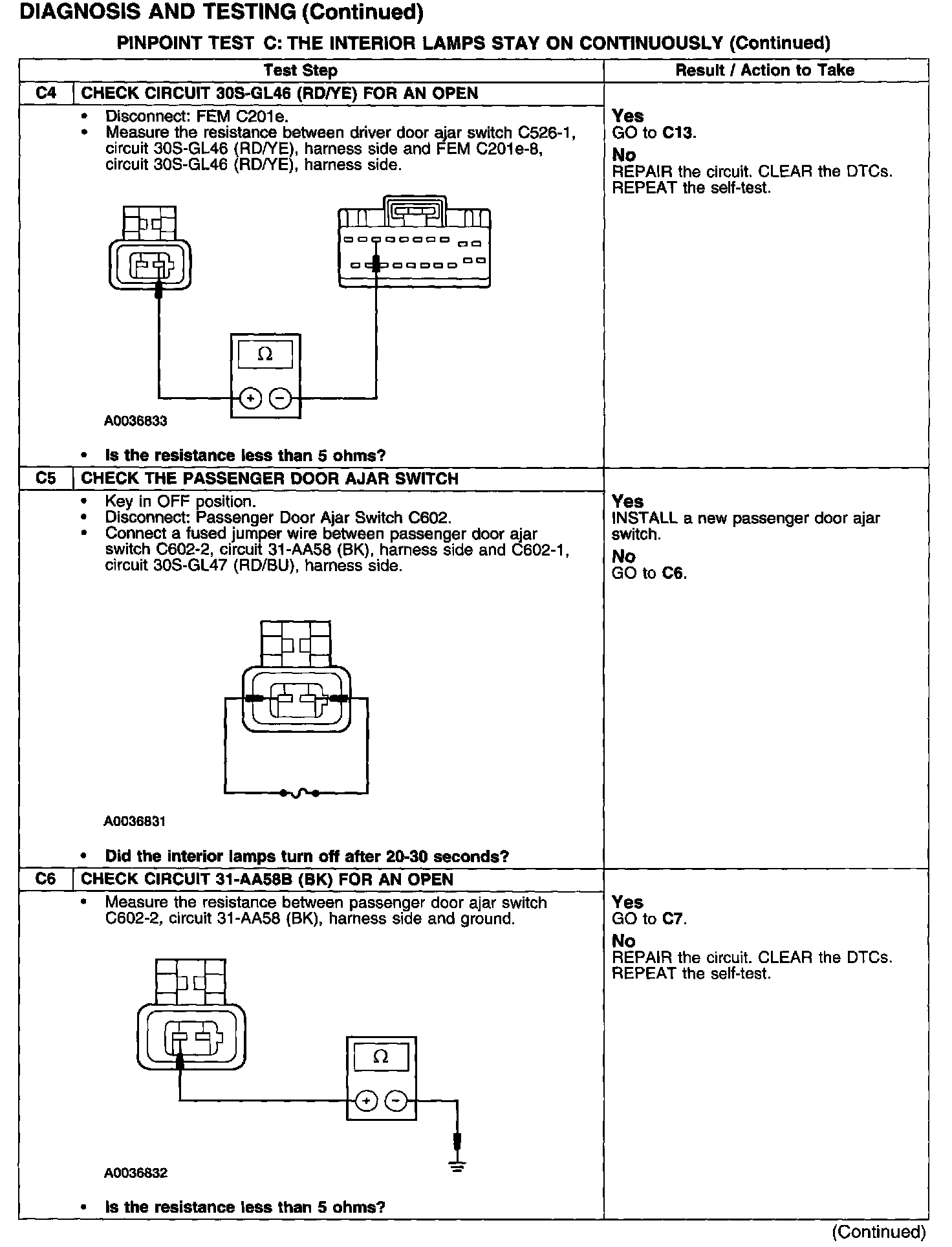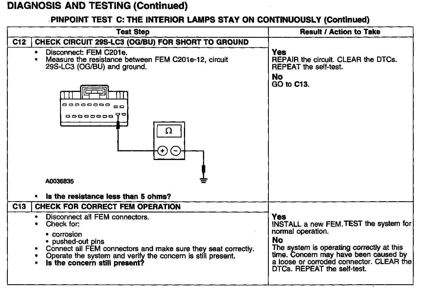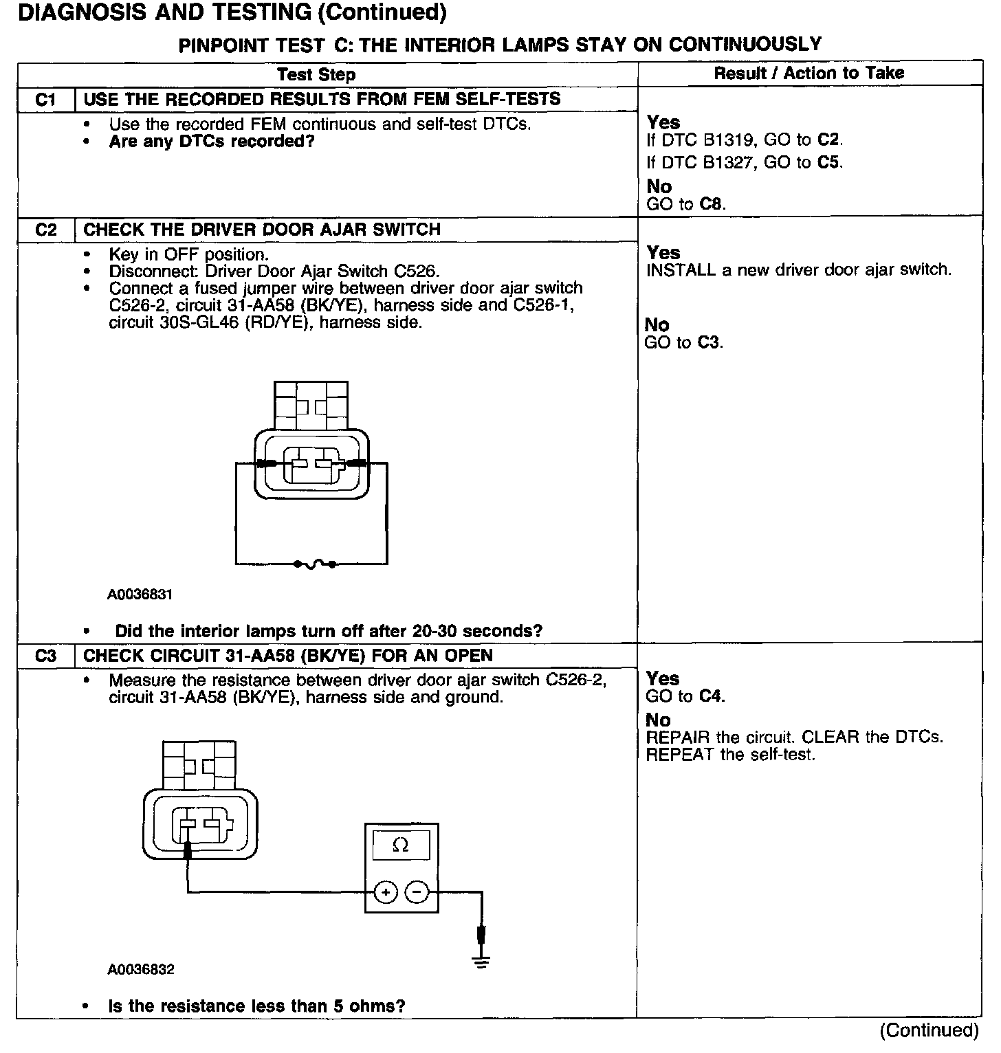 PINPOINT TEST C: THE INTERIOR LAMPS STAY ON CONTINUOUSLYTest C1-C3: