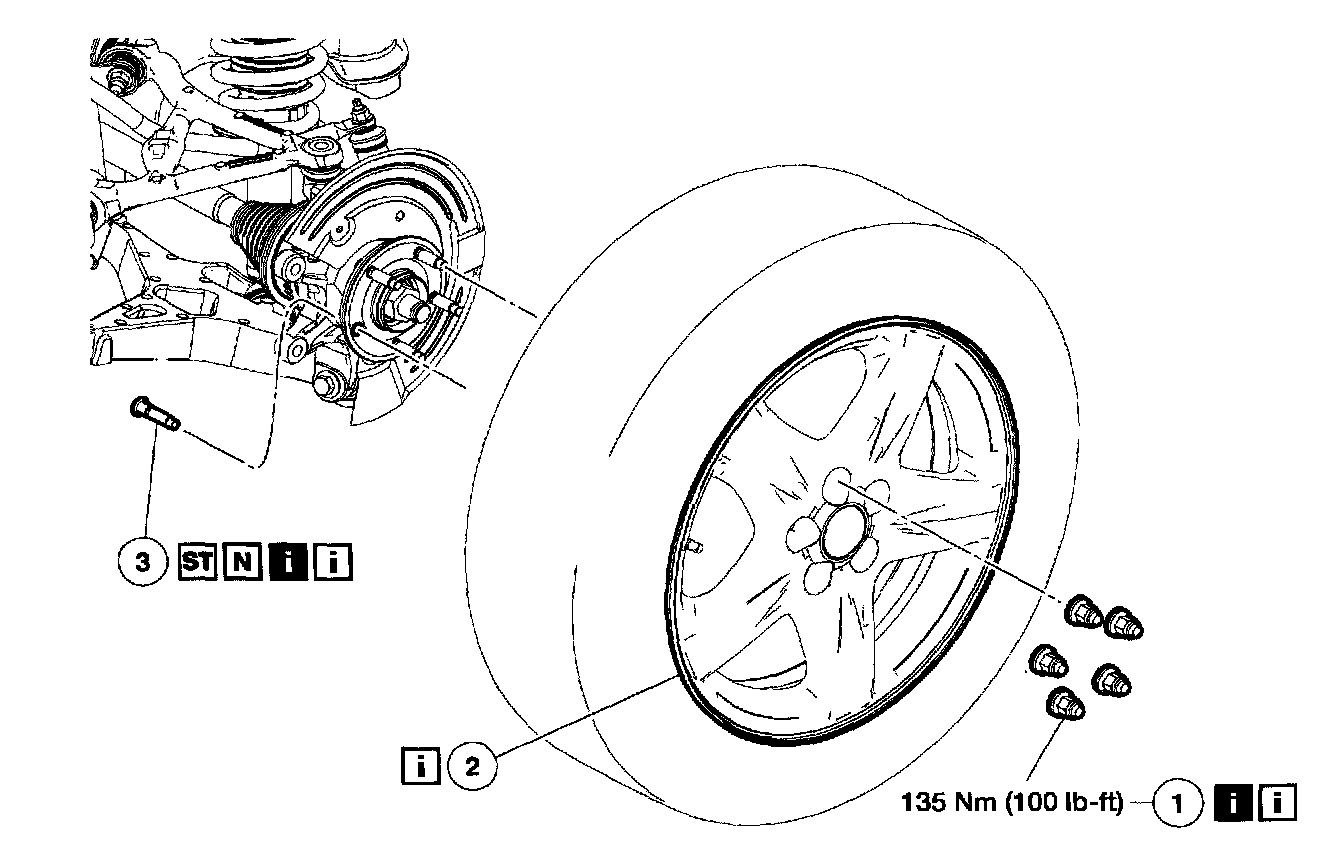 1. WARNING: Retighten at 800 km (500 miles) after any wheel change or any time the wheel nuts are loosened. Failure to retighten the wheel nuts at the mileage specified could allow the wheels to come off while the vehicle is in motion, possibly causing loss of control.