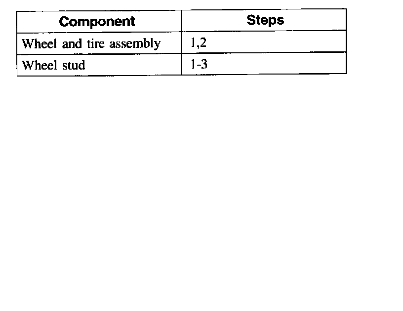 1. WARNING: When installing a wheel and tire, make sure to remove any corrosion, dirt or foreign material present on the mounting surfaces of the wheel and brake disc. Installing a wheel without correct metal-to-metal contact at the mounting surfaces can cause the wheel nuts to loosen and the wheel to come off while the vehicle is in motion, causing loss of control.