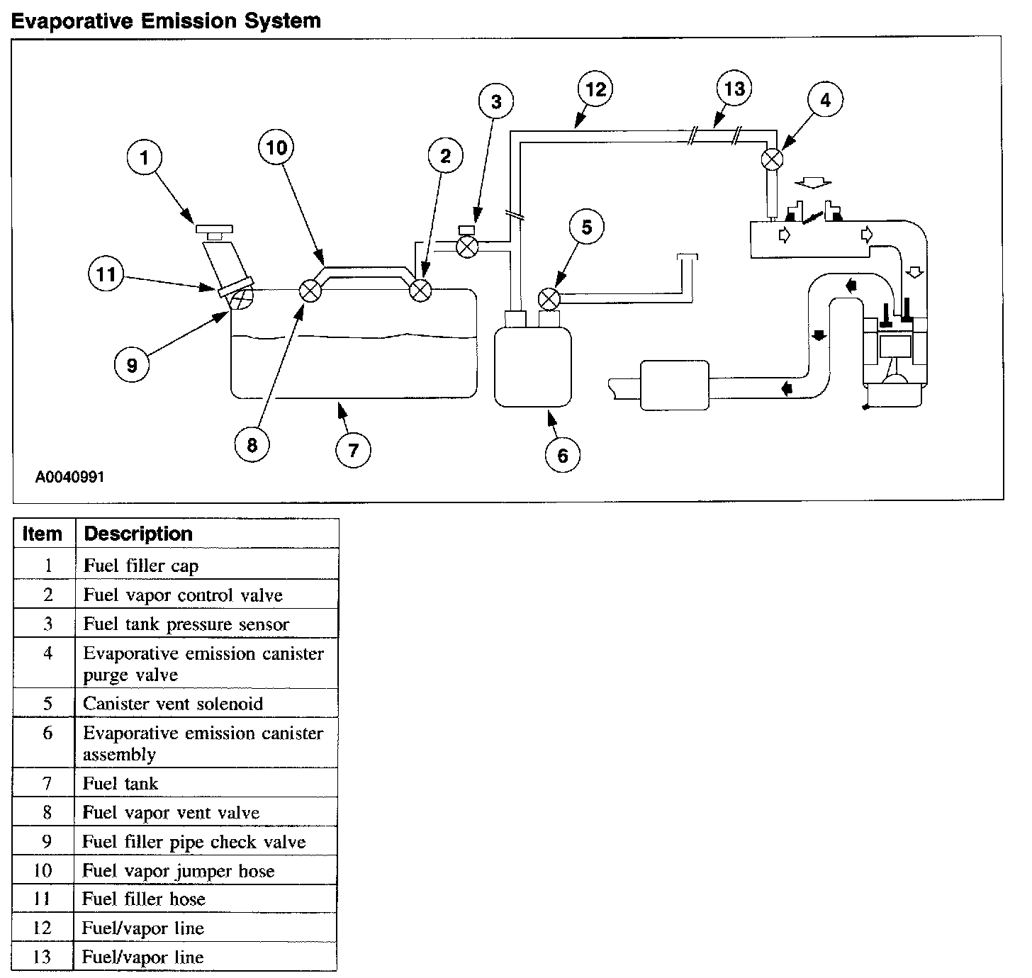 - Fuel vapor tubing connects the fuel vapor control valve to the EVAP canister. This routes the fuel tank vapors, displaced by the incoming liquid, to the EVAP canister.