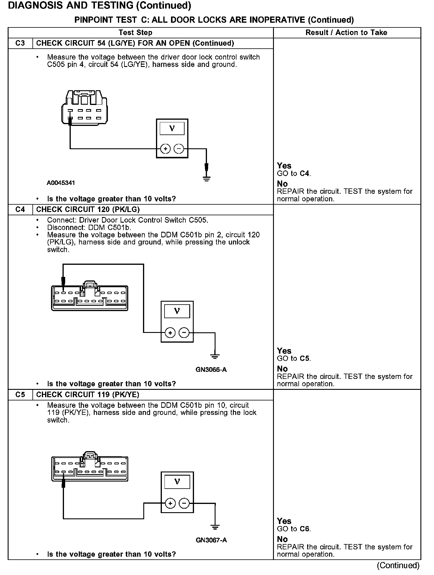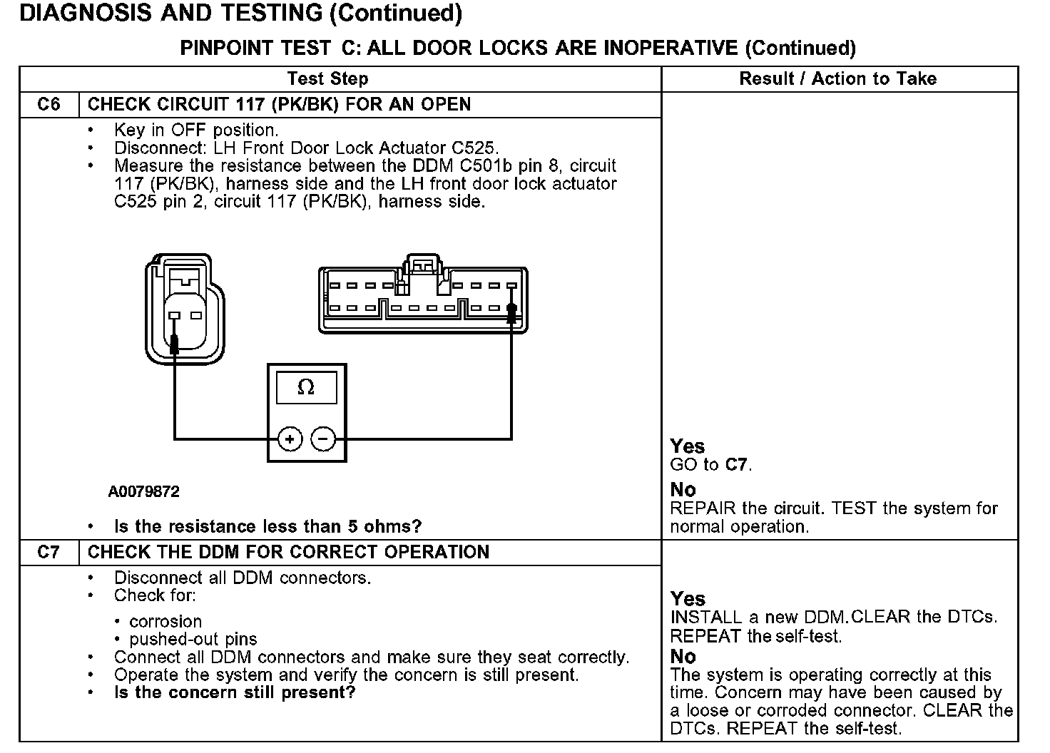 PINPOINT TEST C: ALL DOOR LOCKS ARE INOPERATIVE