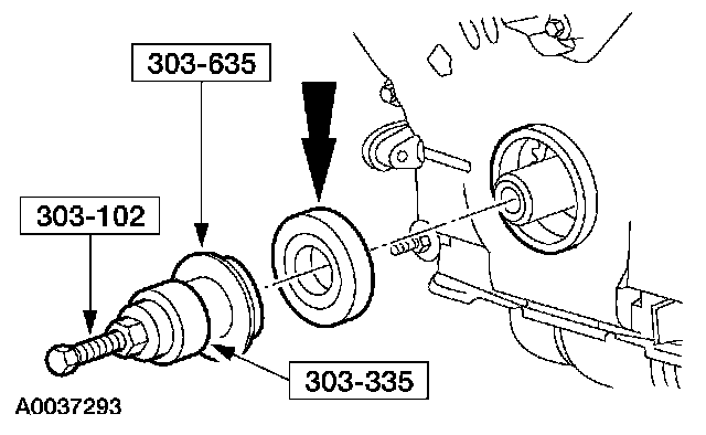 40. NOTE: Use special tool 303-009 or suitable strap wrench to hold the pulley.