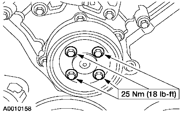 41. Position the coolant pump pulley on the water pump and install the bolts.