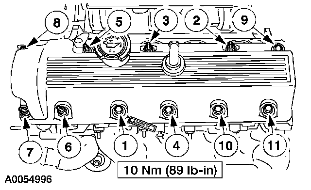 46. Install the gasket into the valve cover and position on the cylinder head. Tighten the bolts in the sequence shown.
