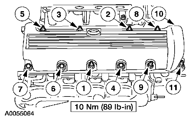 44. Install the gasket into the valve cover and position on the cylinder head. Tighten the bolts in the sequence shown.