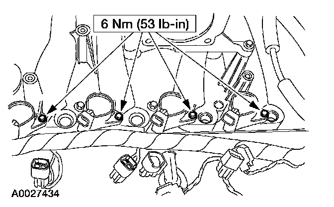 51. Install the intake manifold and hand-tighten the bolts at the locations shown.