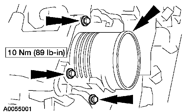 55. Install the coolant outlet adapter and loosely install the bolts.