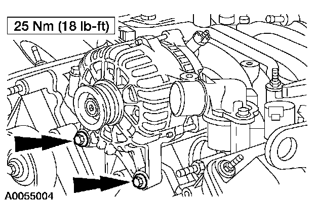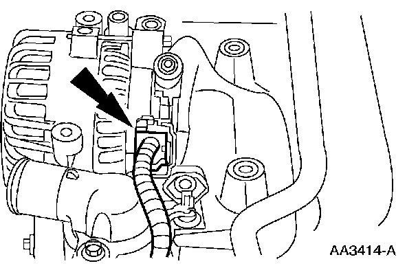 67. Connect the generator electrical connector, generator cable and harness pin-type retainer.