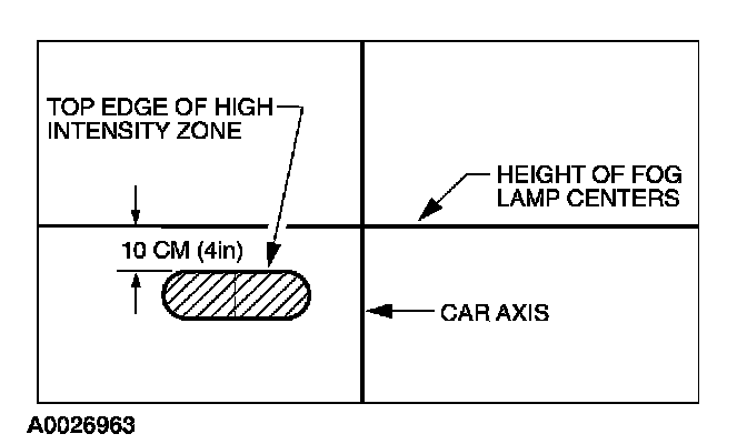 3. The correct visual aim for the fog lamps is with the top edge of the high-intensity zone 10 cm (4 in) below the horizontal center of the fog lamps.