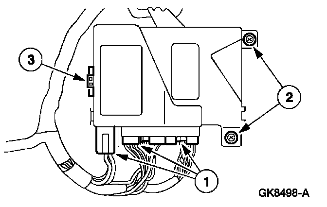 1. CAUTION: Prior to removal of the driver door module (DDM), it is necessary to upload module configuration information to a diagnostic tool. This information needs to be downloaded into the new module once installed.