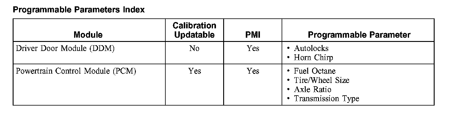 Programmable Parameters Index: