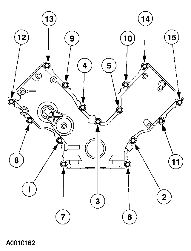 Stage 2: Tighten fasteners 6 through 15 48 Nm (35 ft. lbs.).