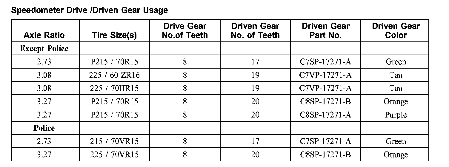Speedometer Drive/Driven Gear Usage: