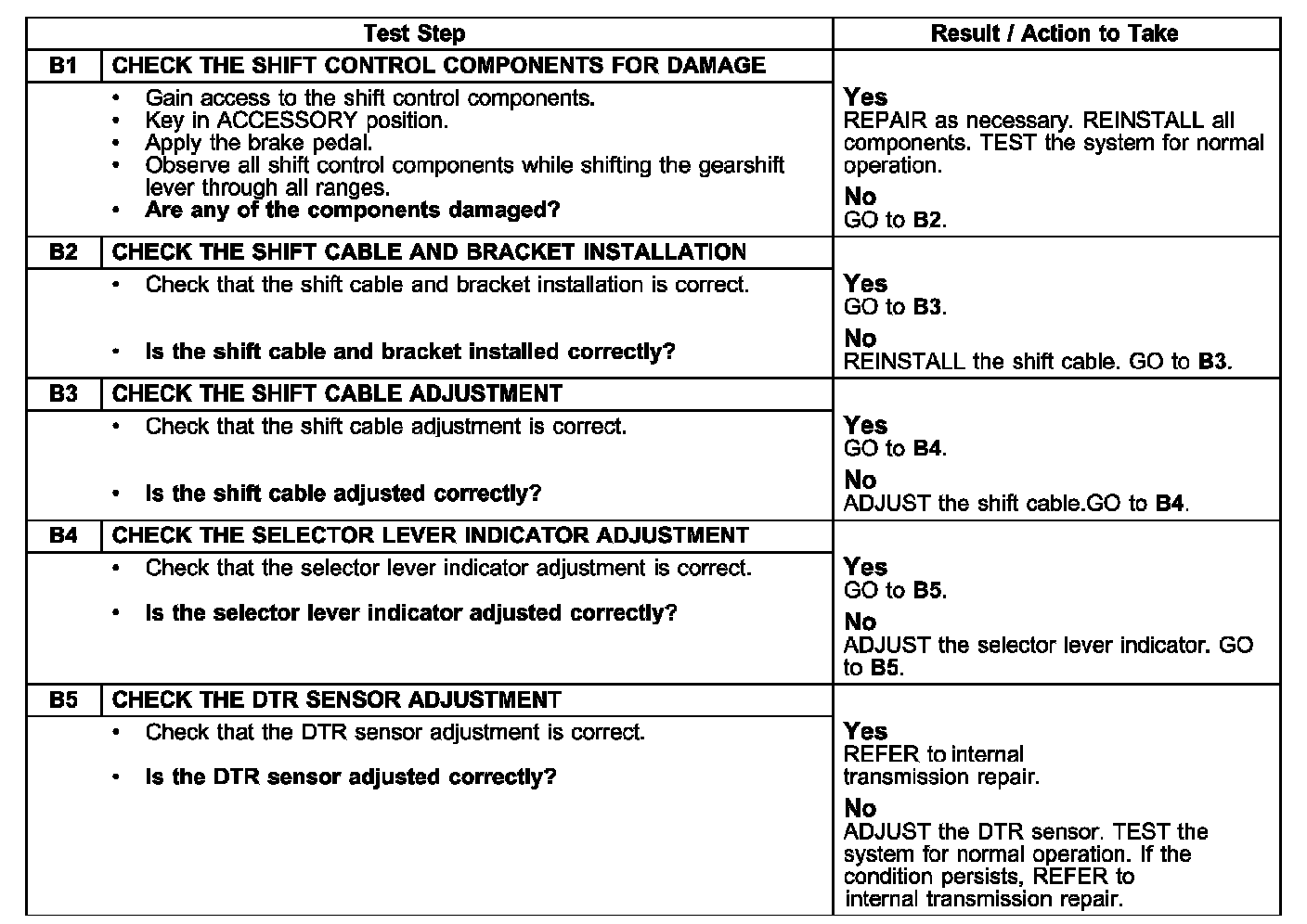 PINPOINT TEST B: THE SHIFT CONTROL IS OUT OF CORRECT GEAR RELATIONSHIP