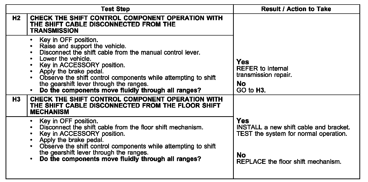 PINPOINT TEST H: THE CONTROL LINKAGE IS BINDING - FLOOR SHIFT