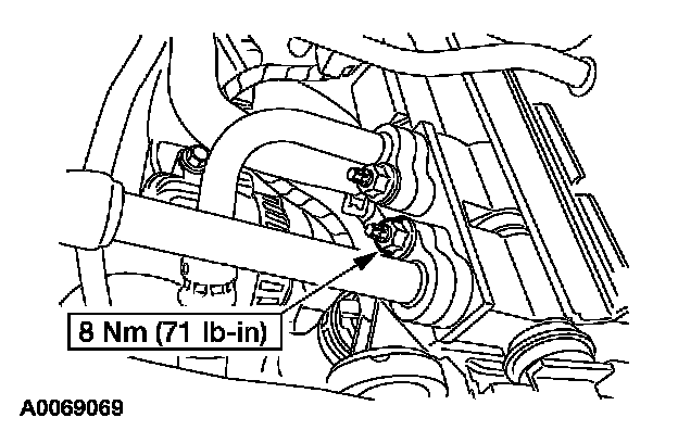 7. Disconnect the fitting at the evaporator core inlet and remove the rear portion of the condenser to evaporator line.