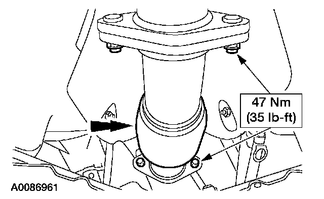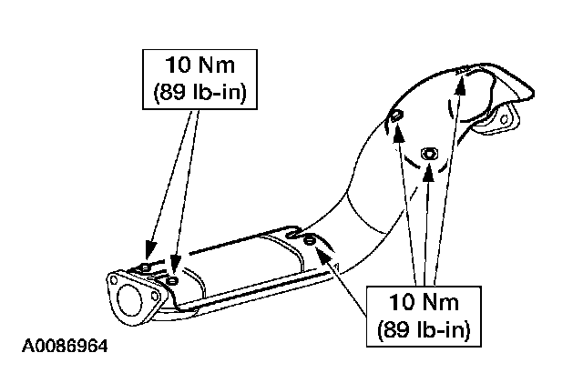 NOTE: Clean the mating surfaces of the manifold and the catalytic converter. To correctly seat the converter, alternately tighten the exhaust manifold-to-catalytic converter nuts to specification.