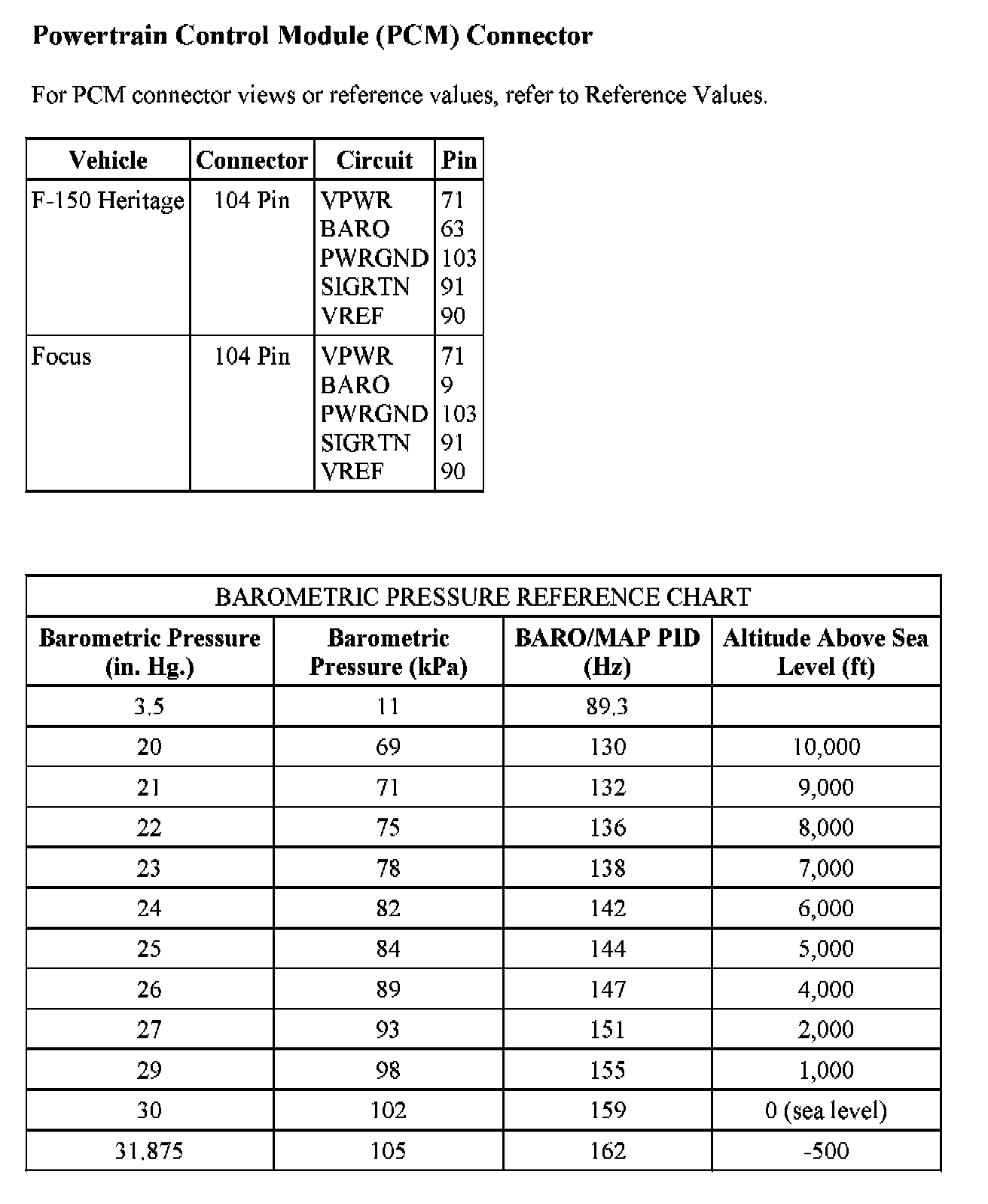 PINPOINT TEST DQ: BAROMETRIC PRESSURE (BARO) SENSOR