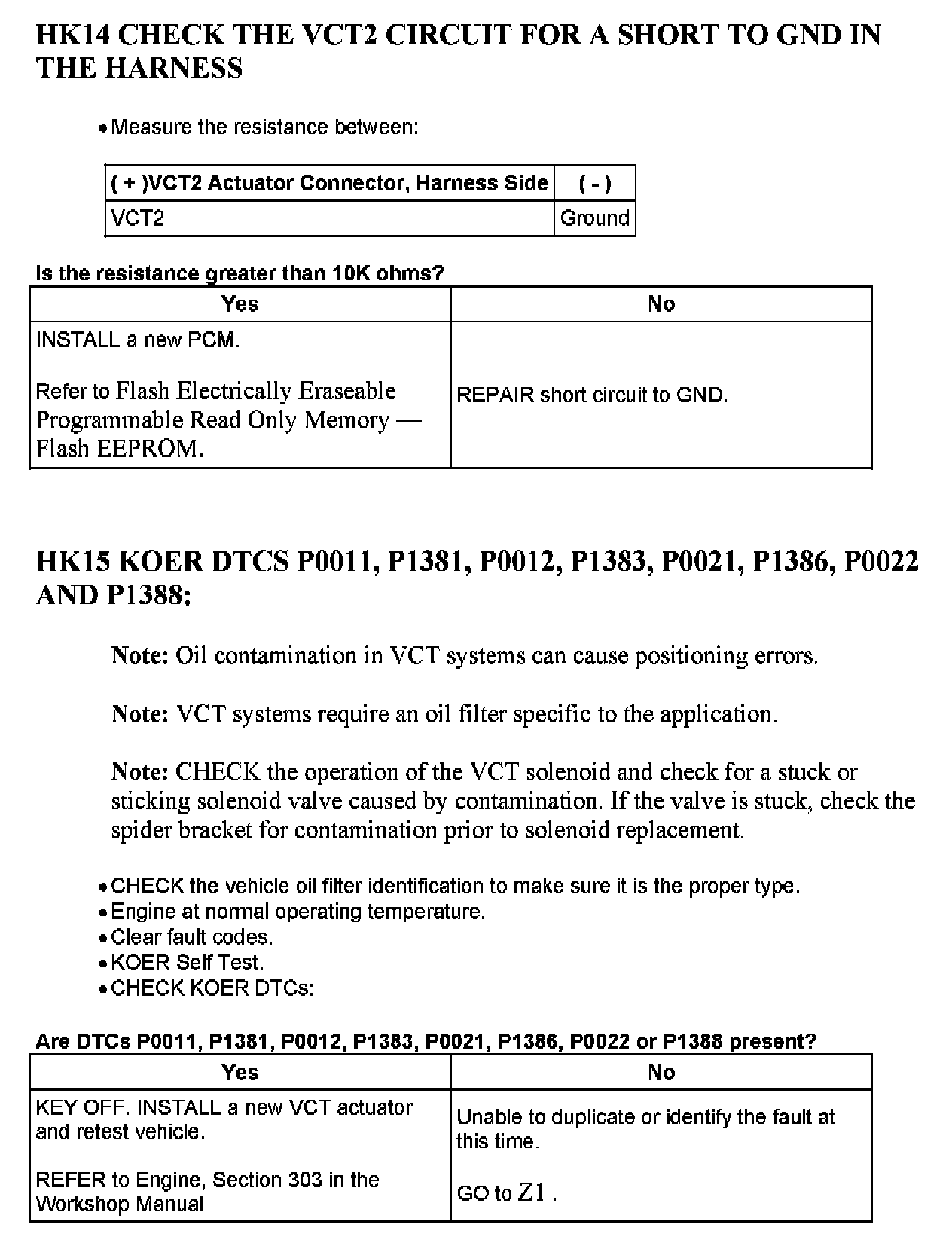 Tests HK: Variable Cam Timing (VCT)
