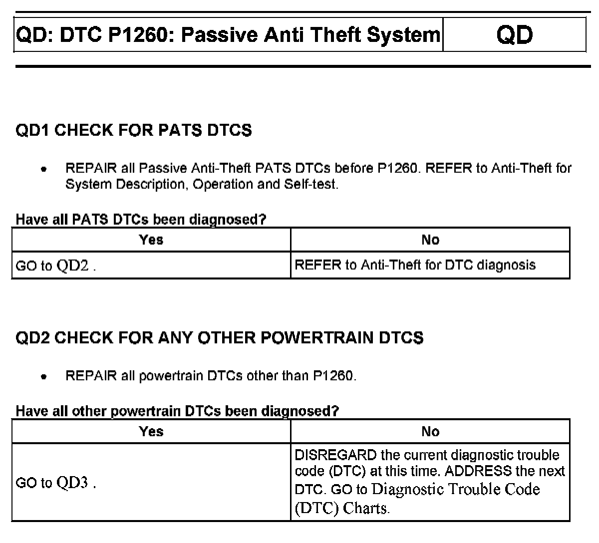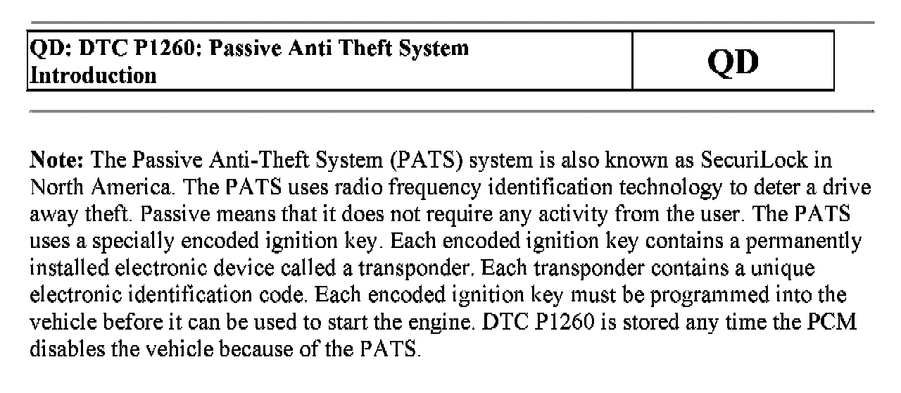 PINPOINT TEST QD: DTC P1260: PASSIVE ANTI THEFT SYSTEM