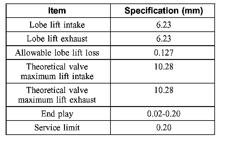 Camshaft (continued):
