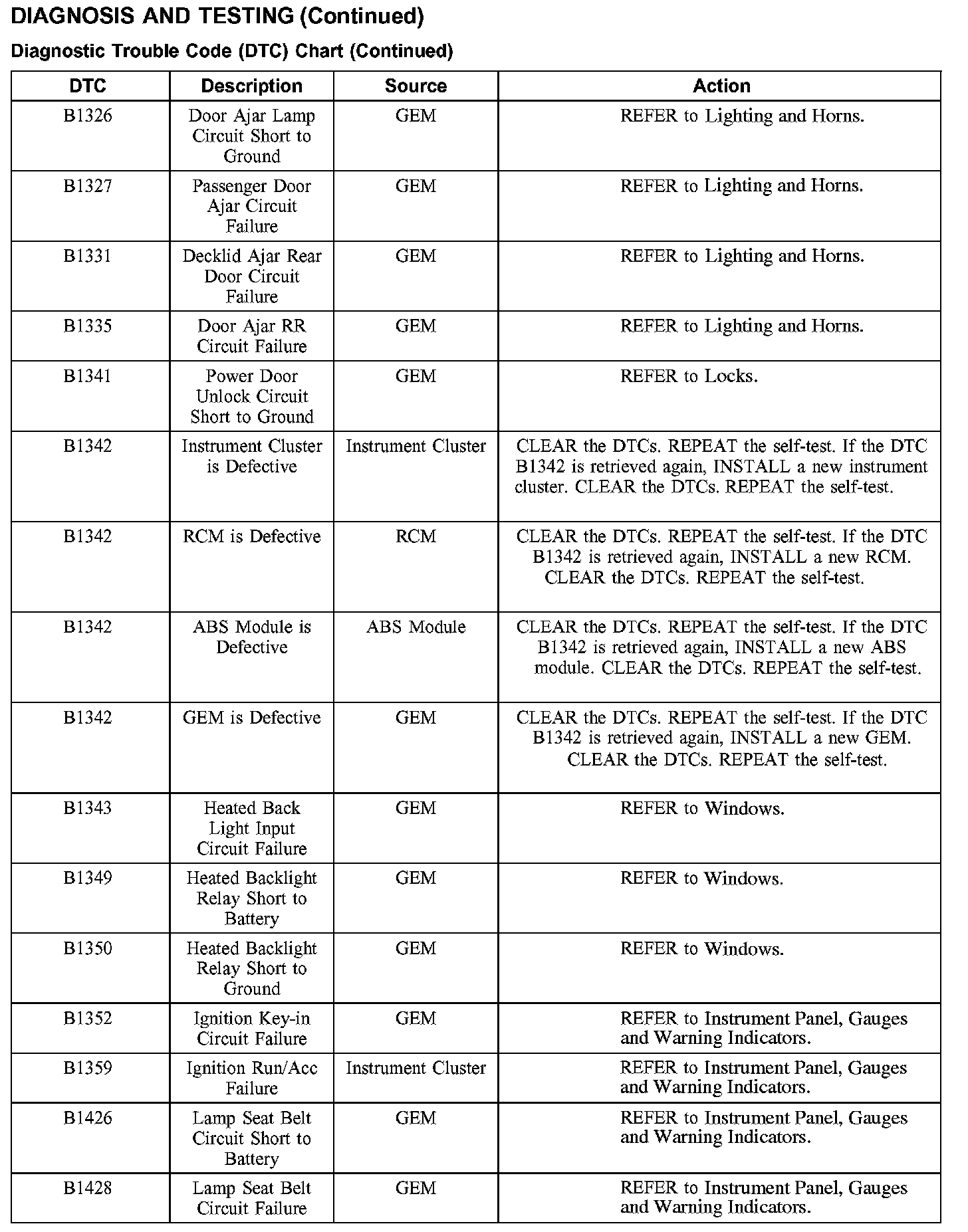 DTC Chart B1326 - B1428: