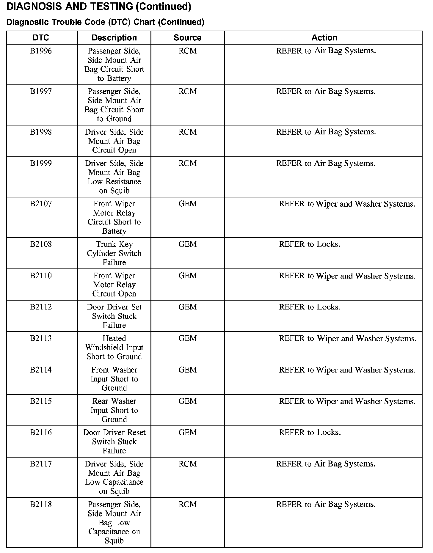 DTC Chart B1996 - B2118: