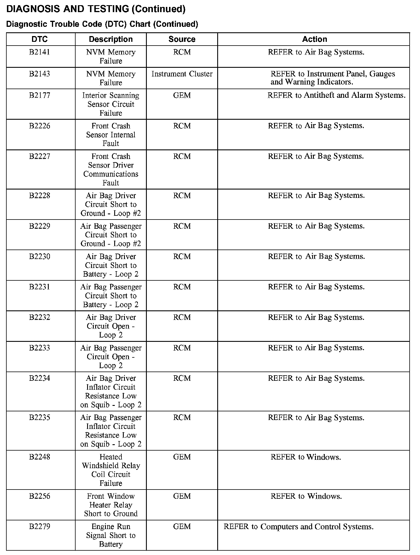 DTC Chart B2141 - B2279: