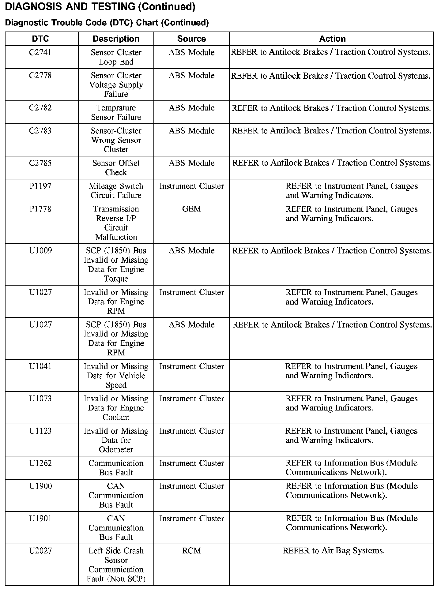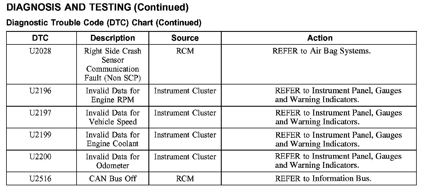 DTC Chart U2028 - U2516: