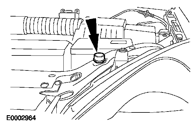 6. On the LH side, remove the windshield washer reservior filler neck.