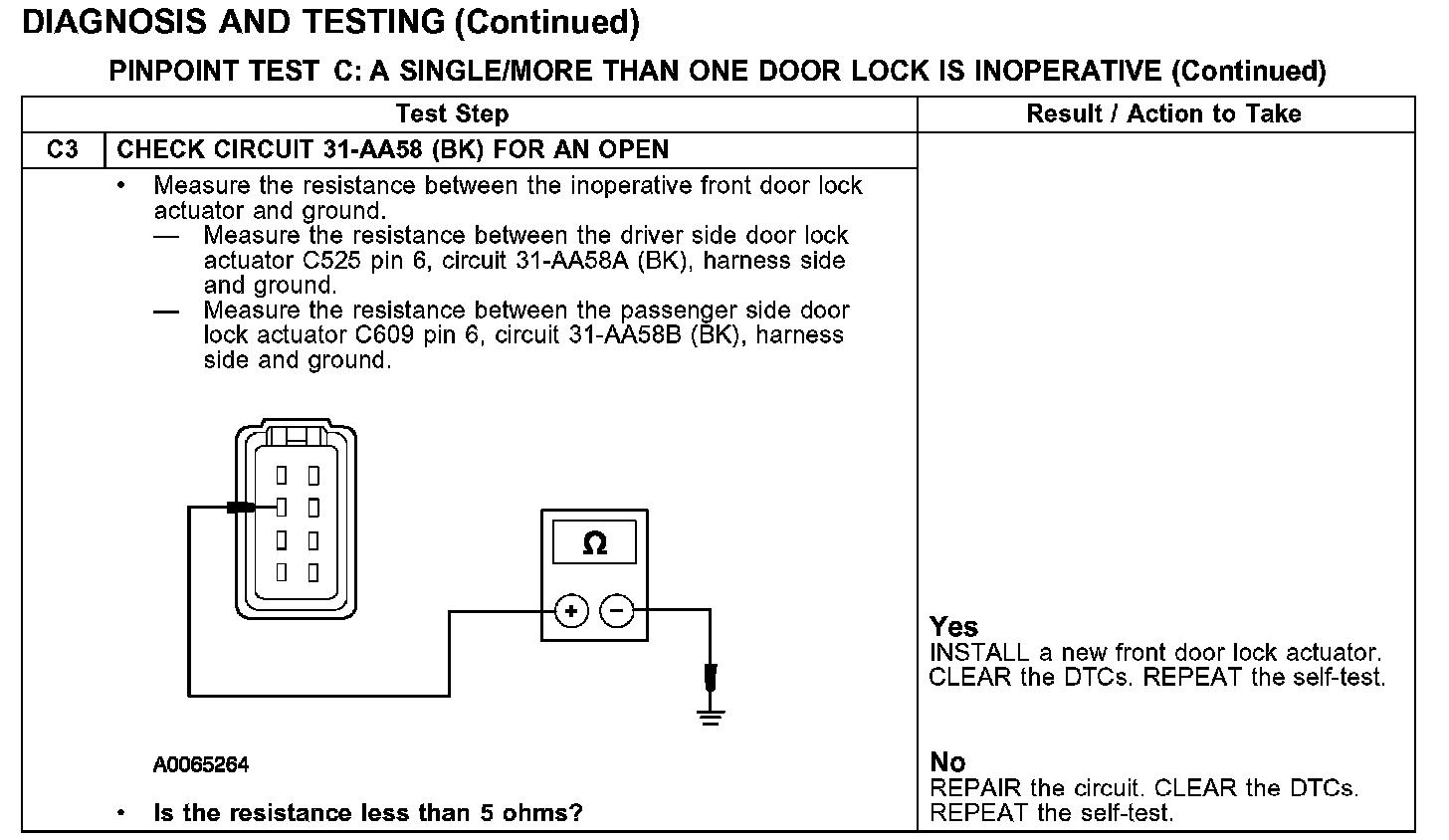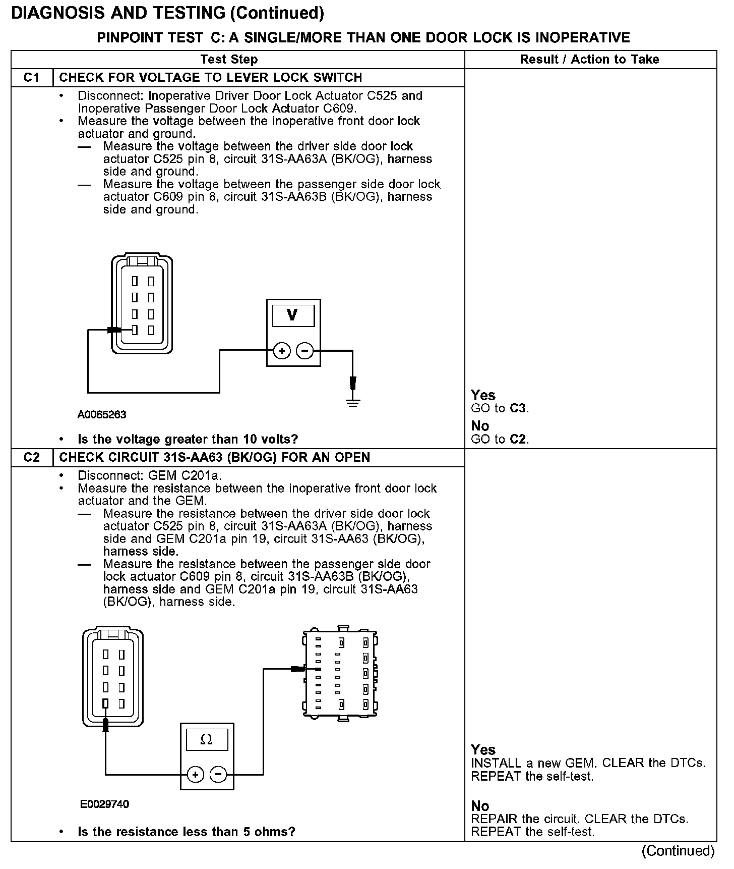 PINPOINT TEST C: A SINGLE/MORE THAN ONE DOOR LOCK IS INOPERATIVE