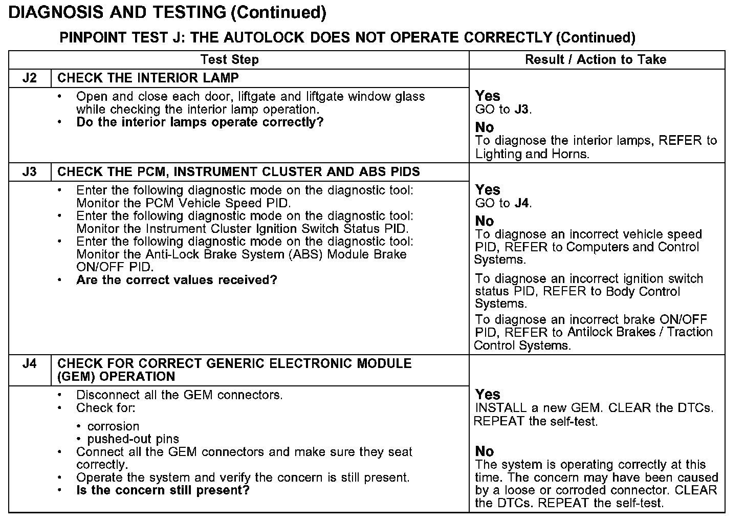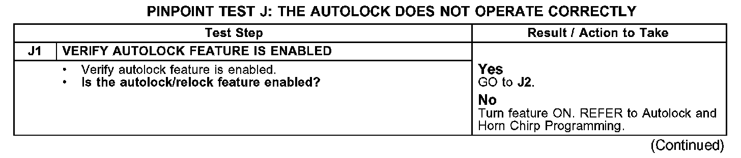 PINPOINT TEST J: THE AUTOLOCK DOES NOT OPERATE CORRECTLY