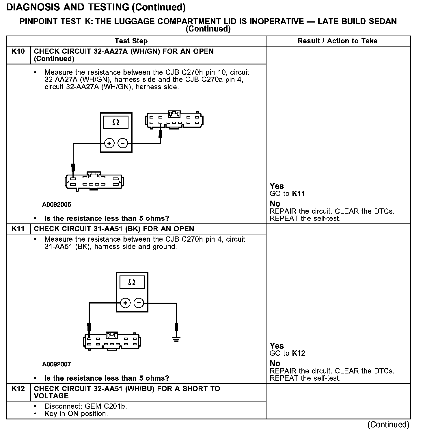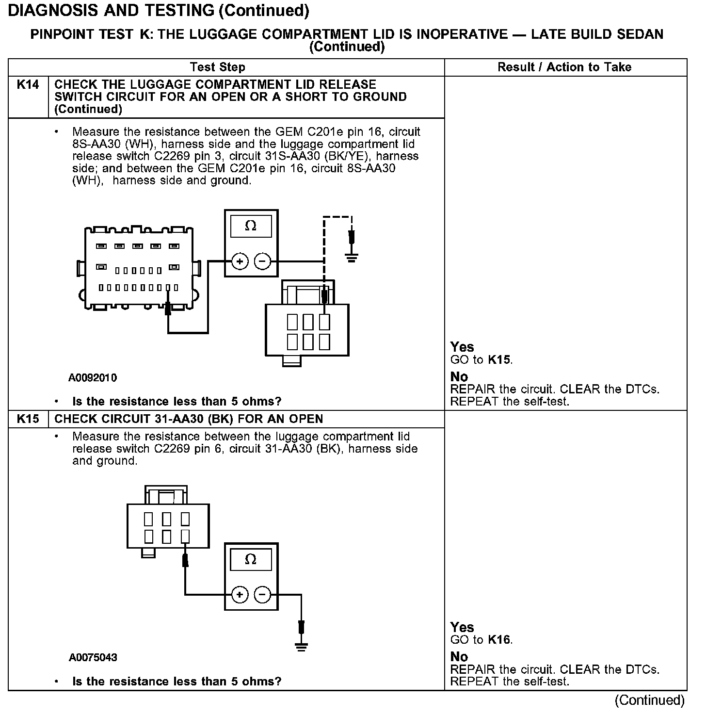 PINPOINT TEST K: THE LUGGAGE COMPARTMENT LID IS INOPERATIVE - LATE BUILD SEDAN