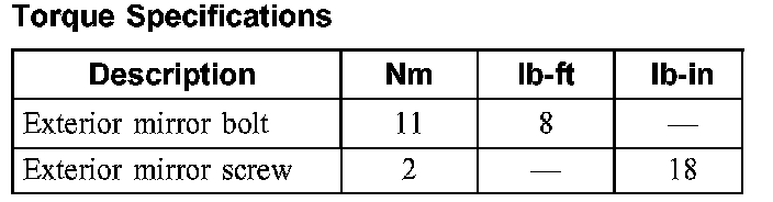 Torque Specifications: