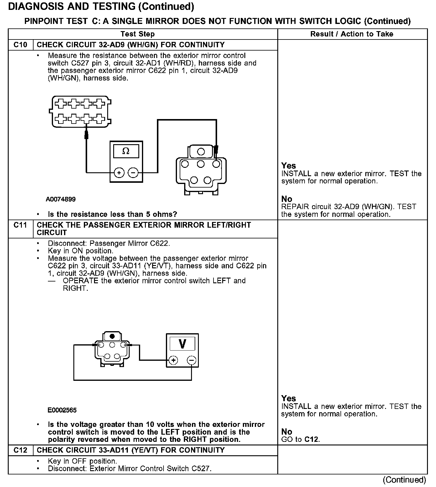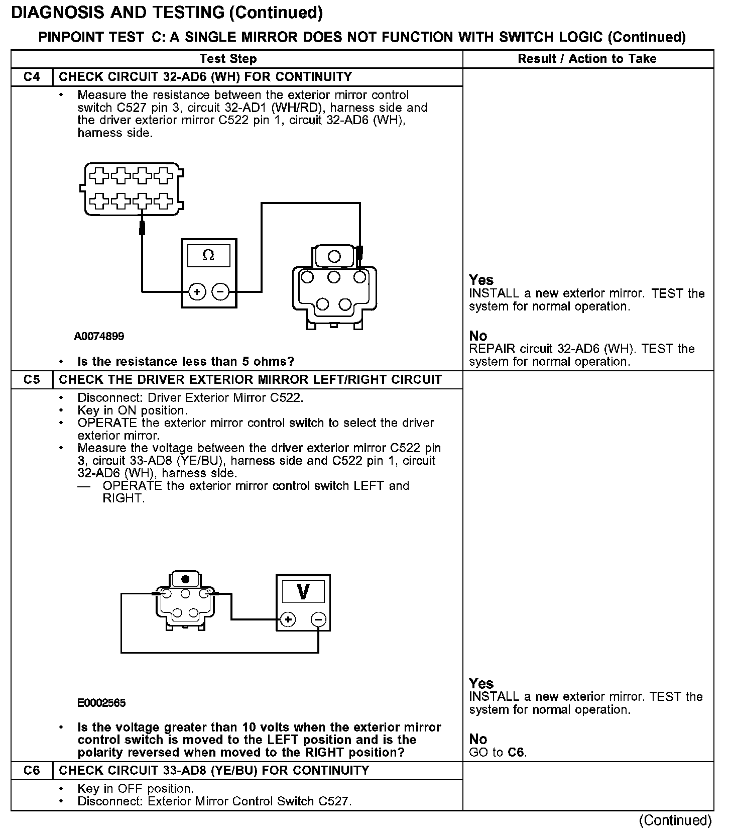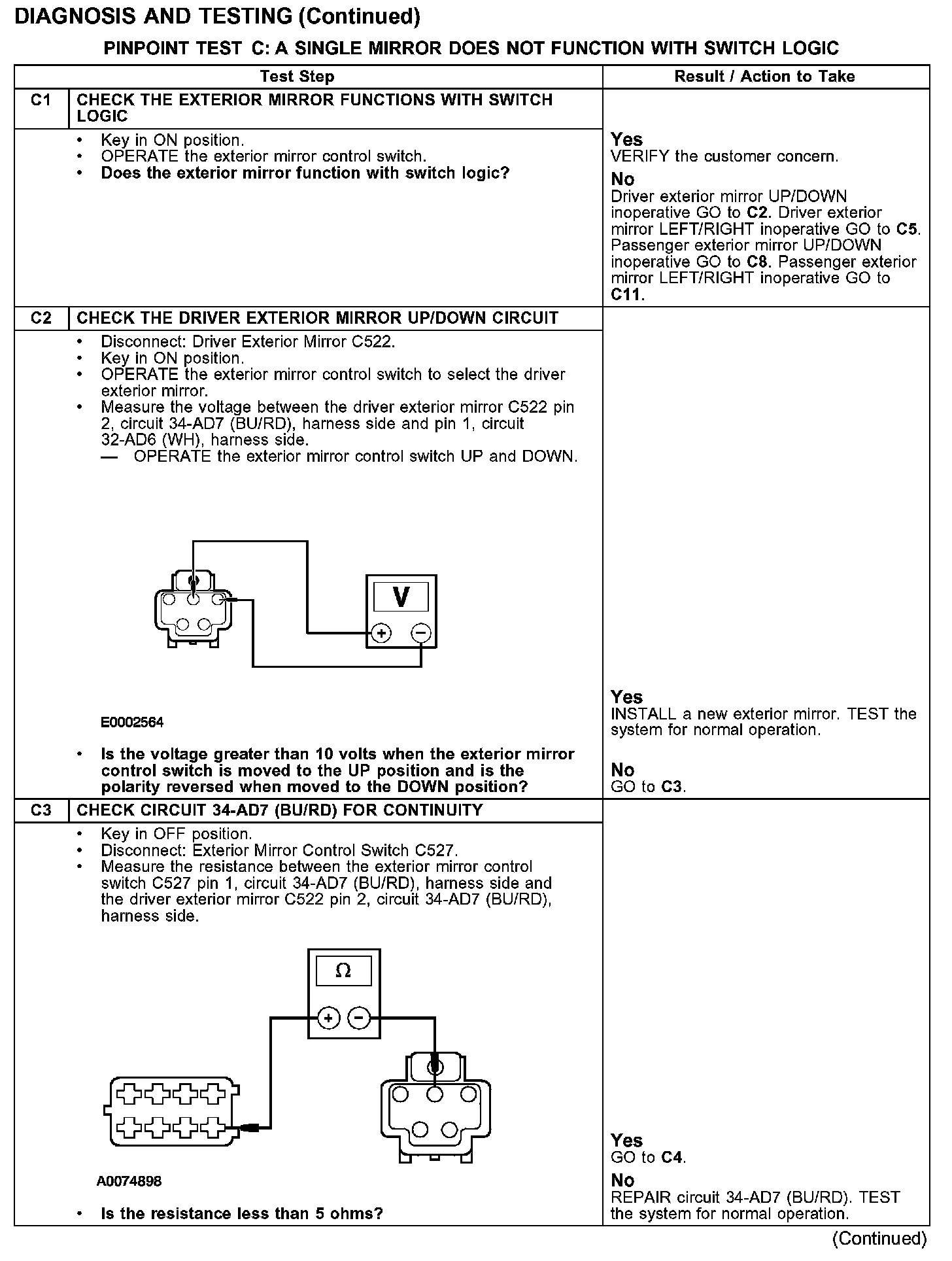 PINPOINT TEST C: A SINGLE MIRROR DOES NOT FUNCTION WITH SWITCH LOGIC