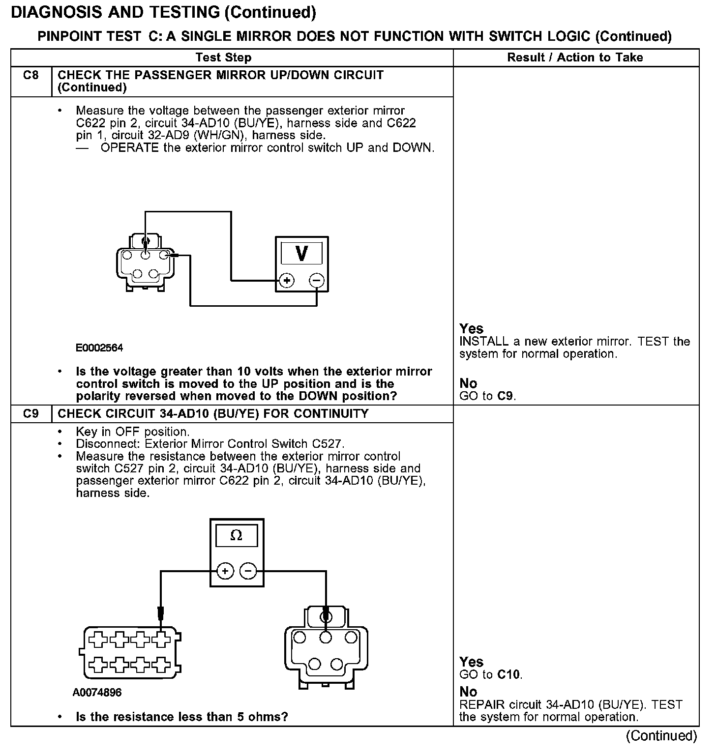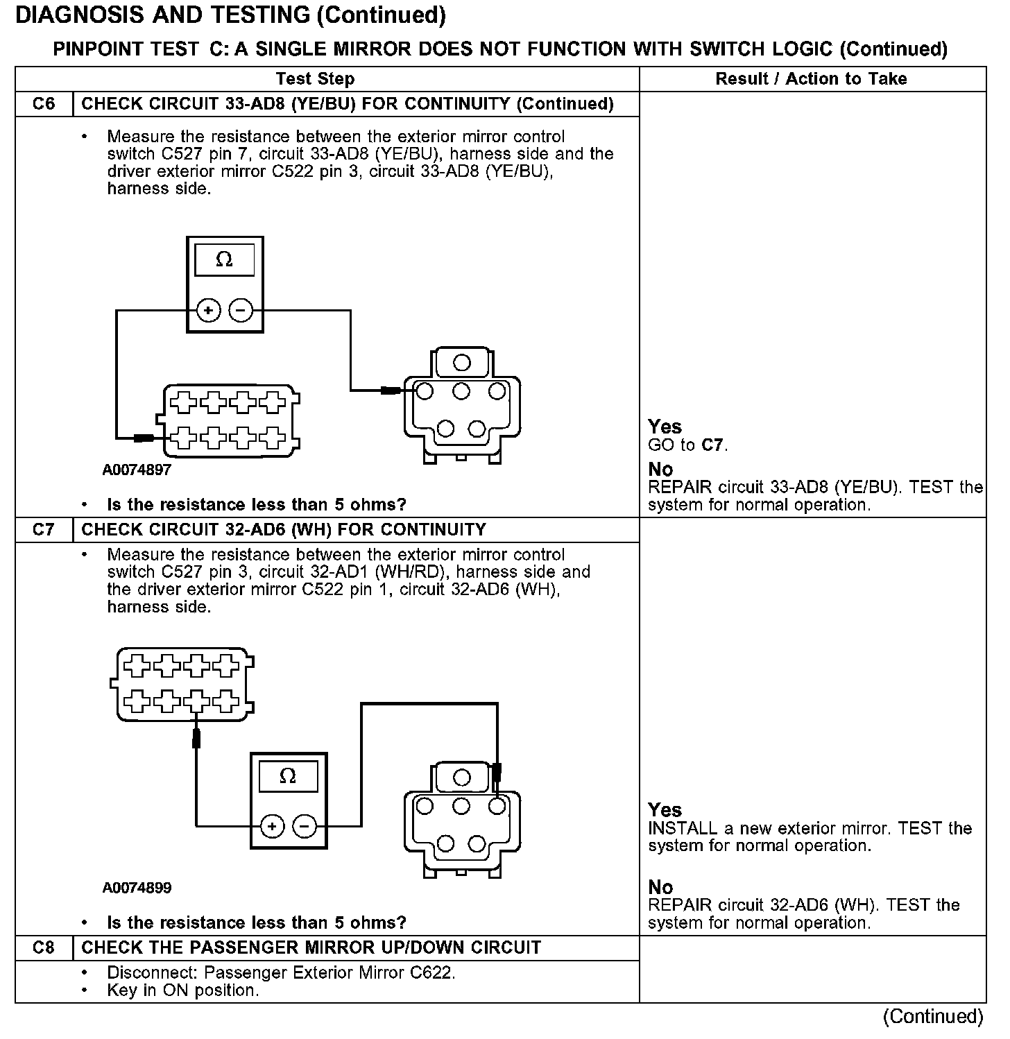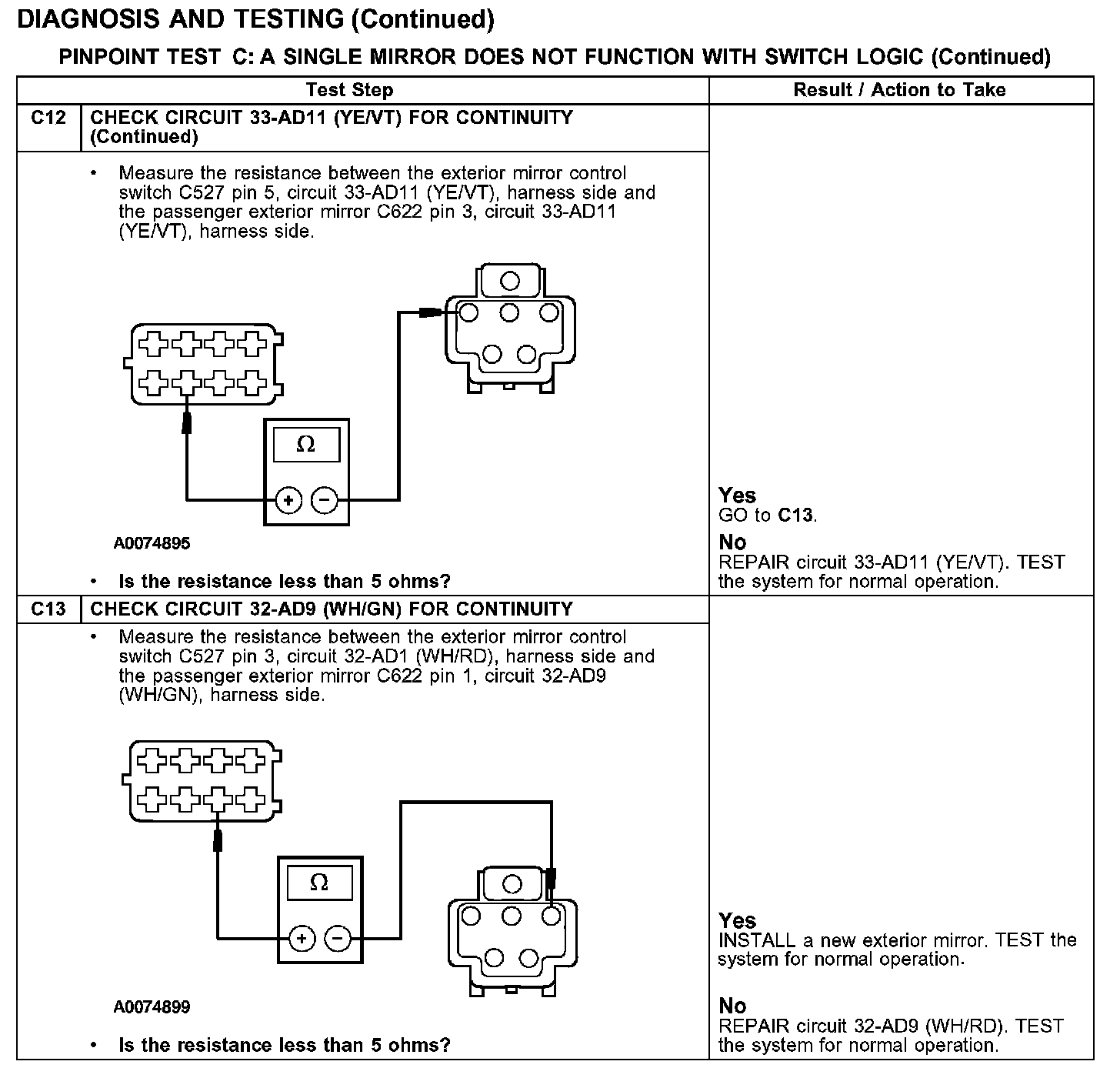 PINPOINT TEST C: A SINGLE MIRROR DOES NOT FUNCTION WITH SWITCH LOGIC