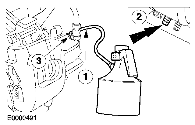 1 Connect a bleed tube to the bleeder screw and into a suitable container.
