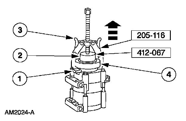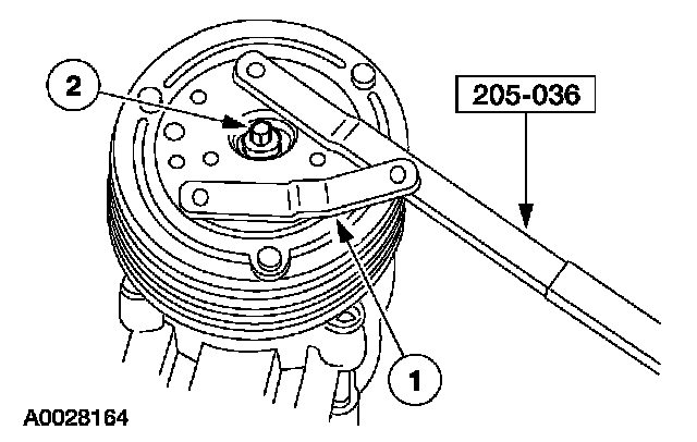 2. CAUTION: Do not use air tools. The A/C clutch field coil can be easily damaged.