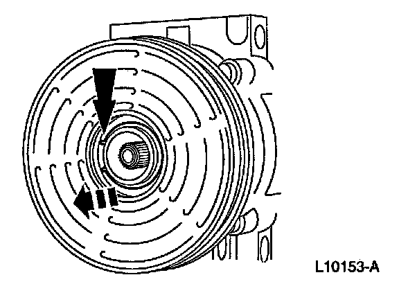 8. CAUTION: Do not use air tools. The A/C clutch field coil can be easily damaged.